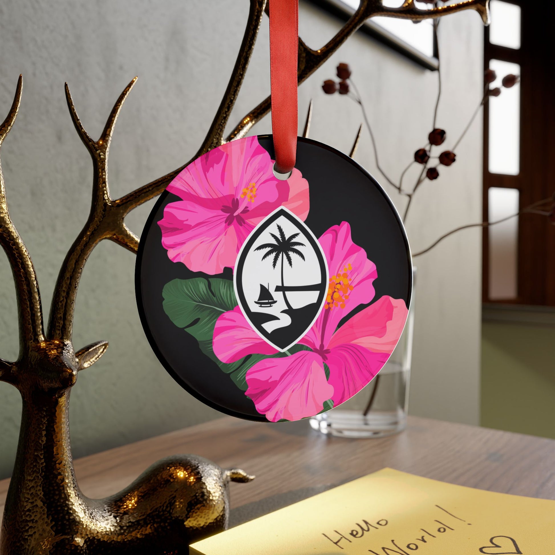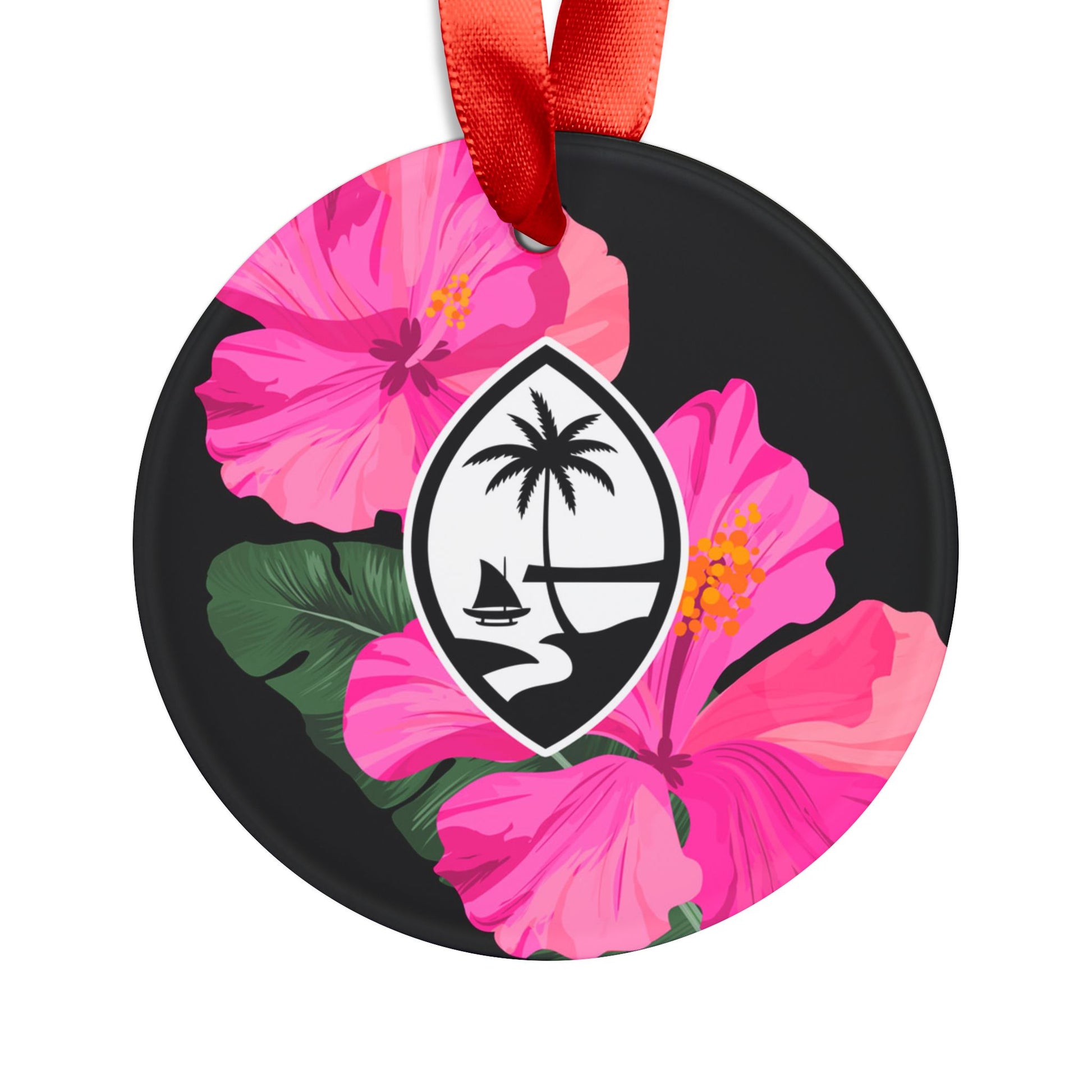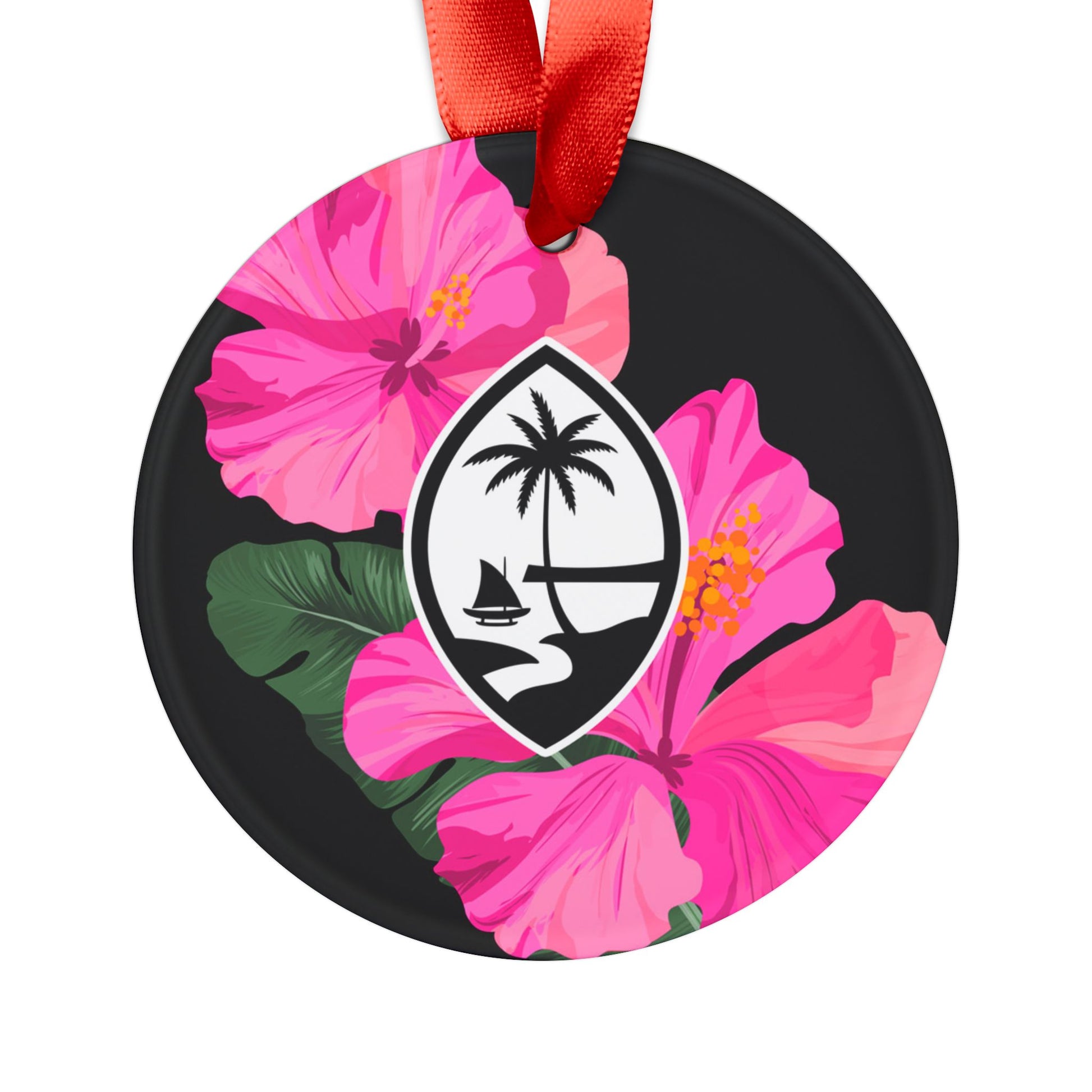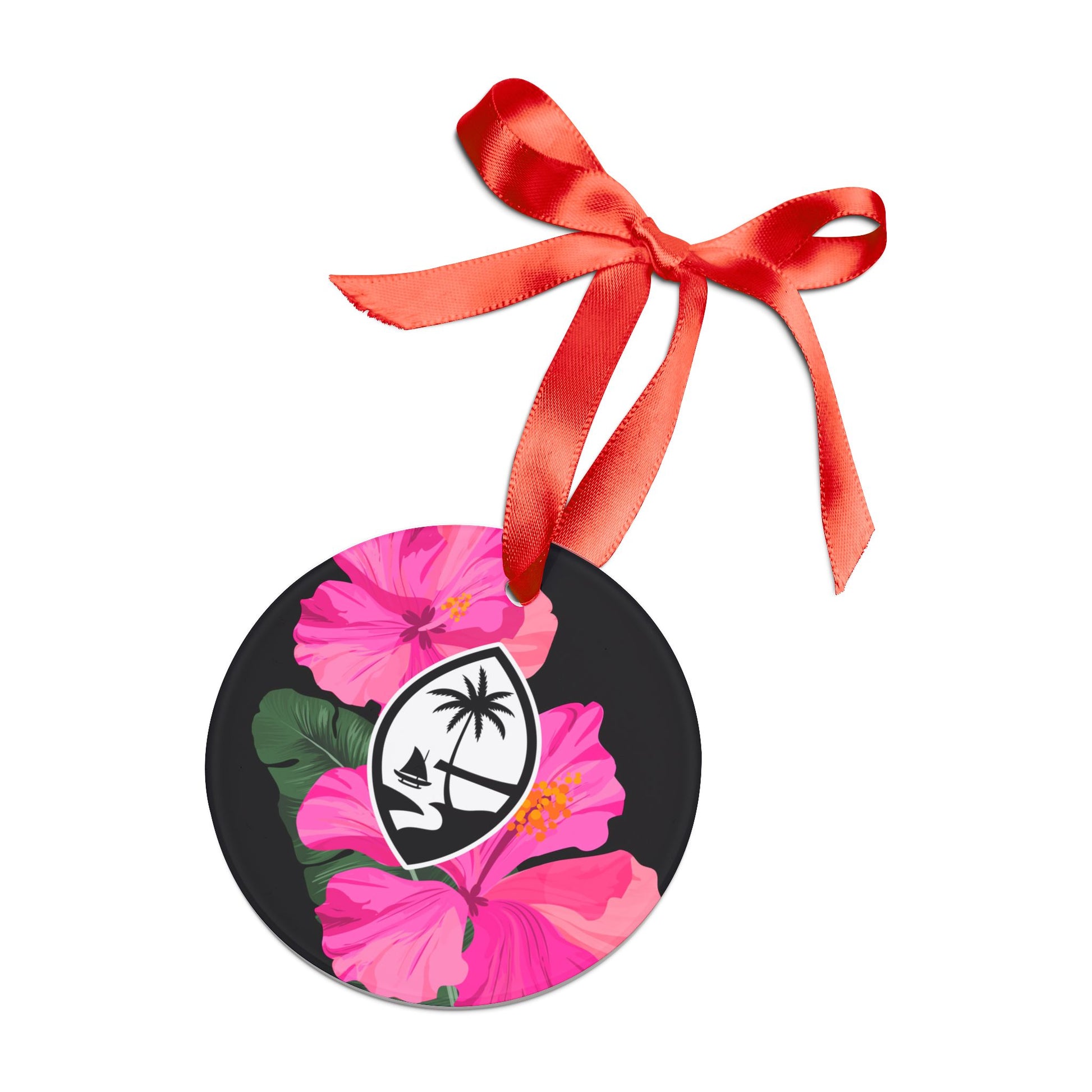 Guam Hibiscus Paradise Pink Acrylic Ornament with Ribbon