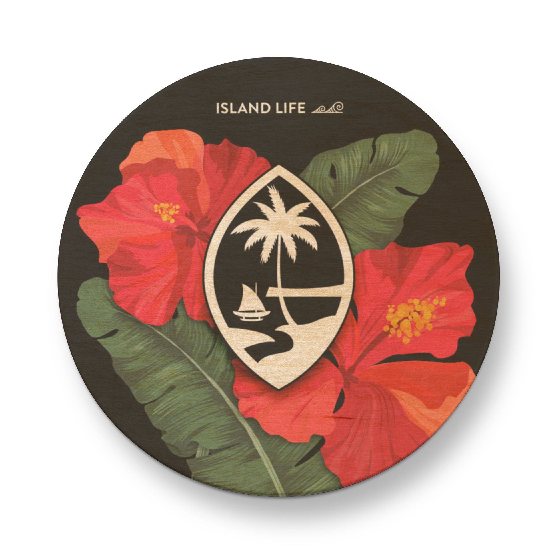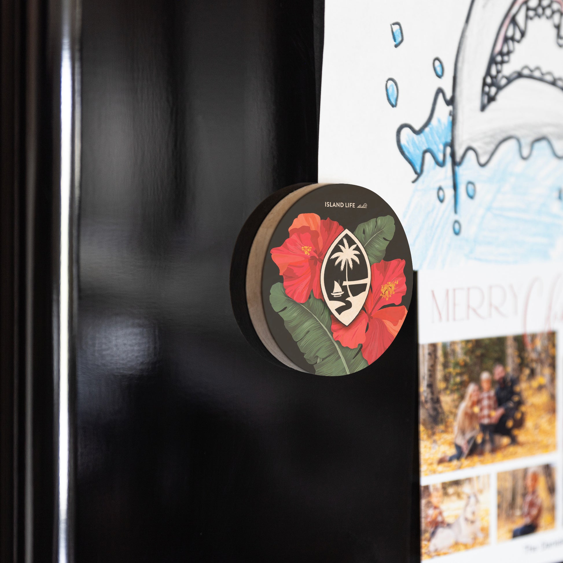 Guam Hibiscus Paradise Red Wooden Magentic Bottle Opener