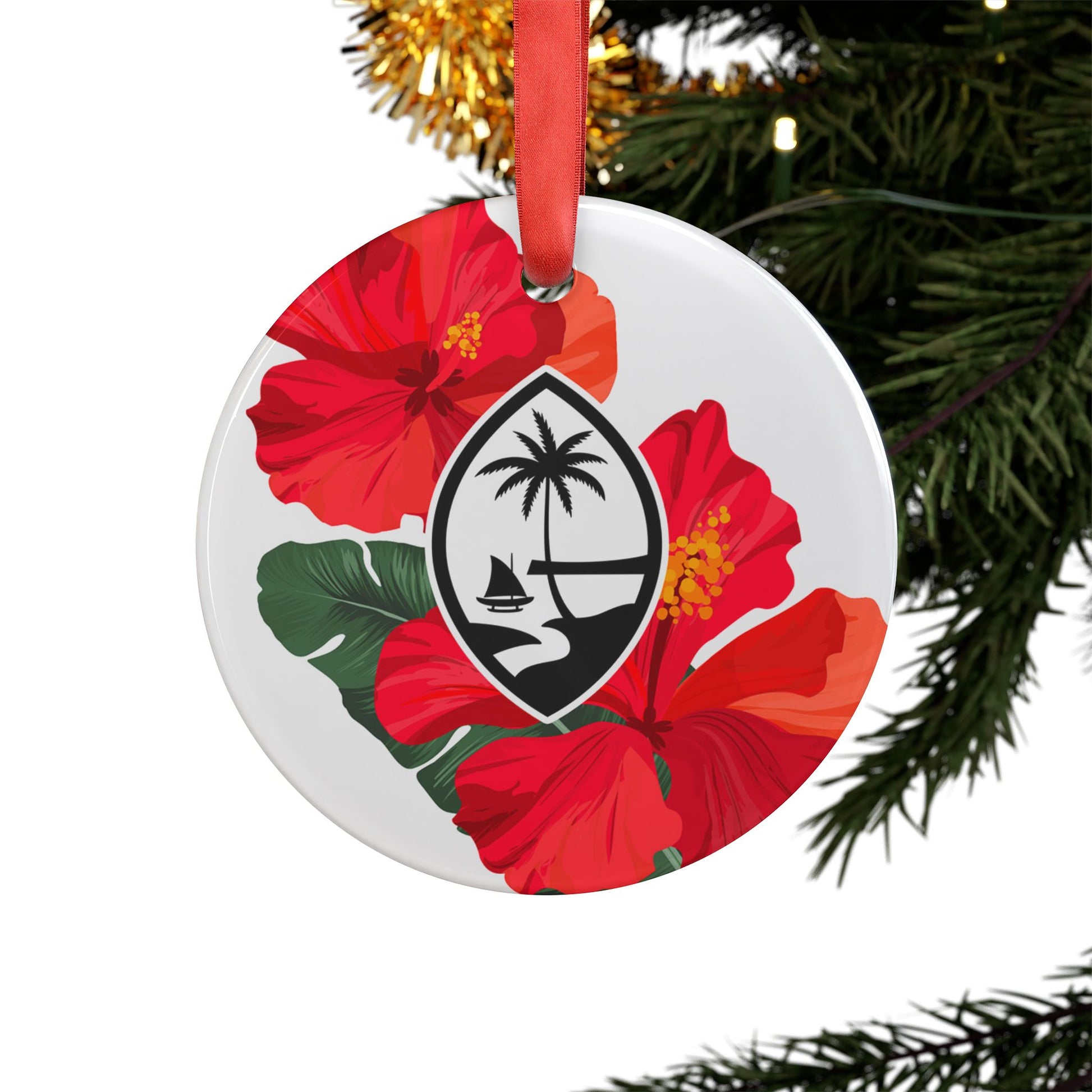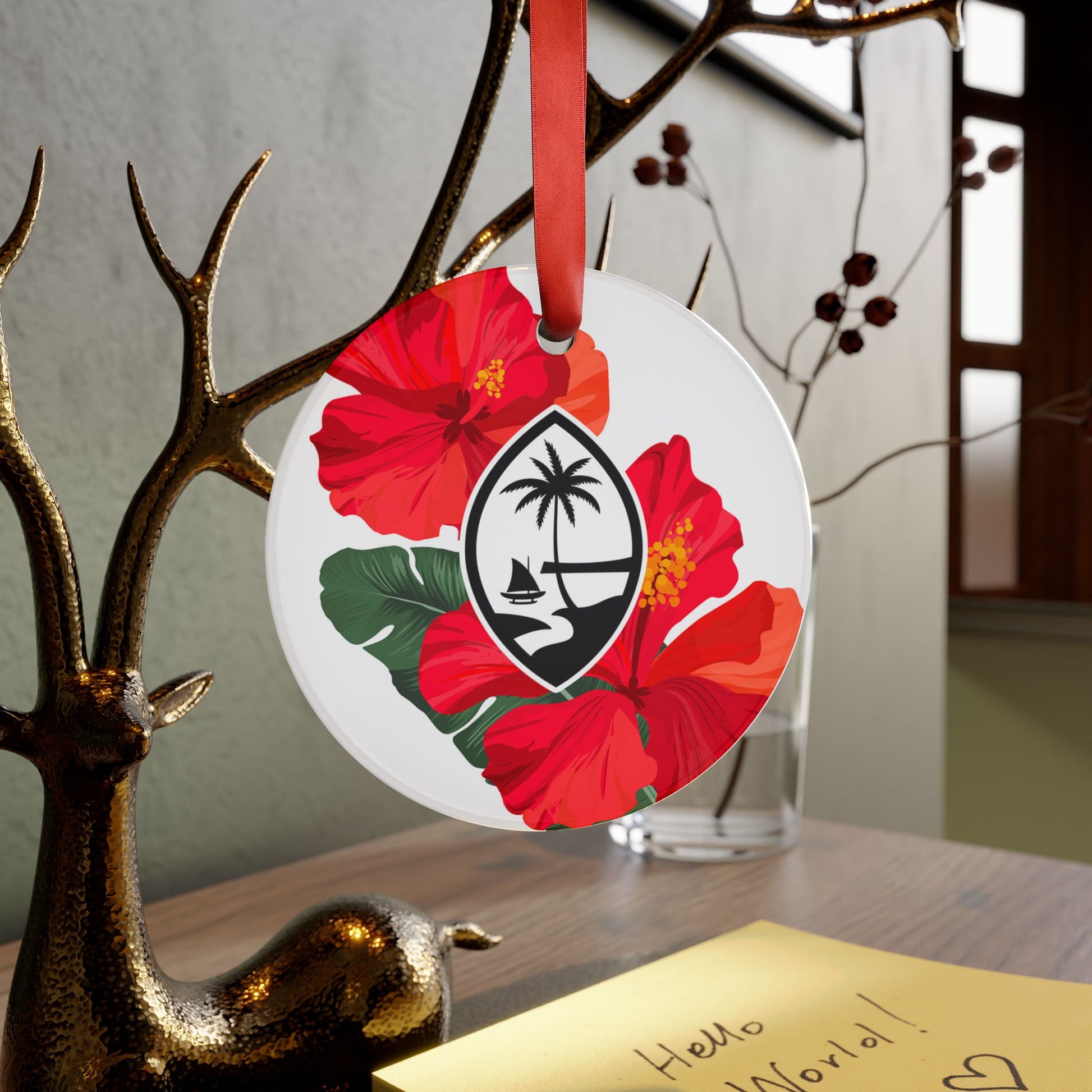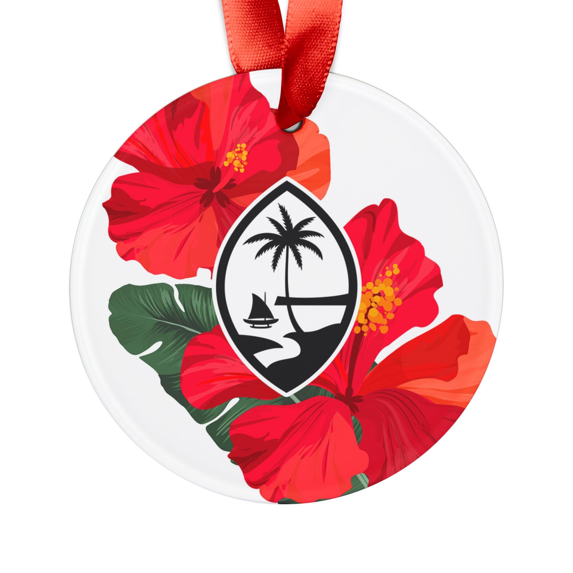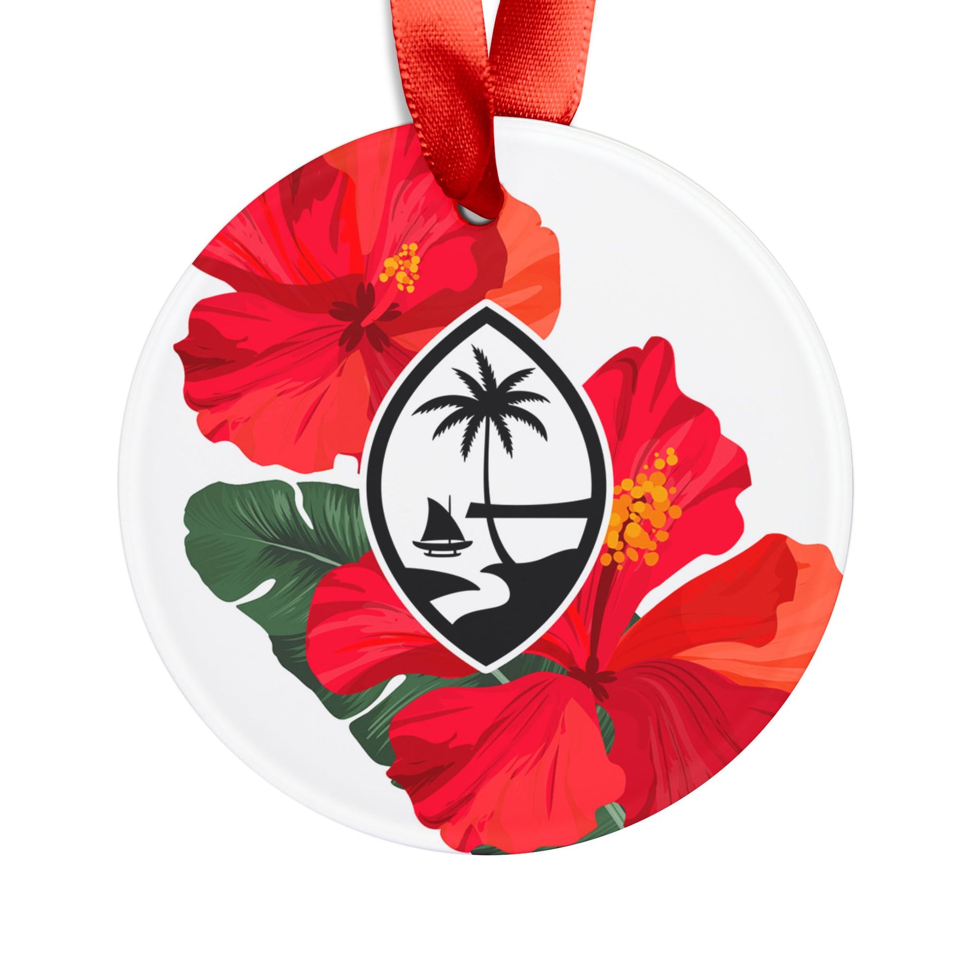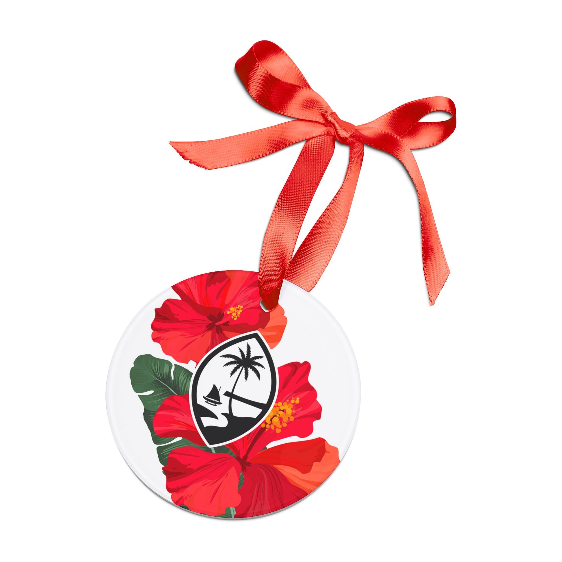 Guam Hibiscus Paradise White Acrylic Ornament with Ribbon