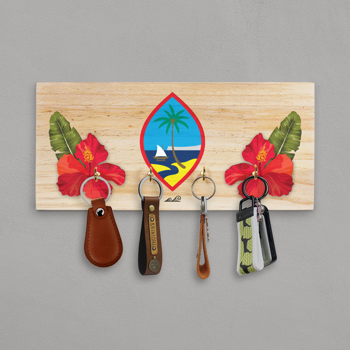 Hang your keys with paradise-- and island pride! The Guam Hibiscus Paradise Wood Key Holder lets you show off your style and island swag. With a unique design made of solid pine wood, it's perfect for any home, and for gifting too!