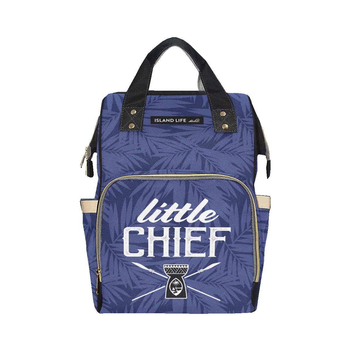 Introducing our newest product - Guam Baby Diaper Bags! This design features the text, "little chief" above a latte stone and tribal spear with the Guam Seal on a coconut leaves background. The bottom is black so you can set it down without worrying about stains. This large, multi-function bag has several pockets and a large main compartment that can be used way past the baby and diaper stage. It's the perfect accessory for your islander.