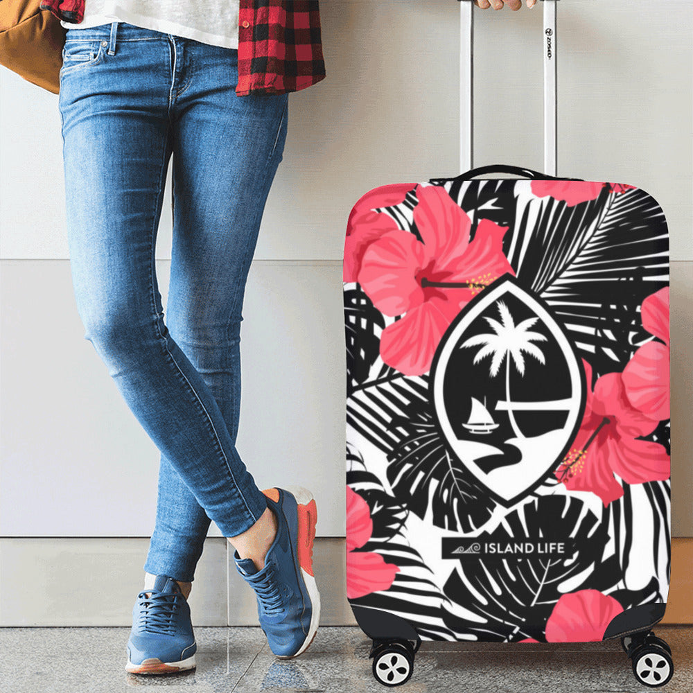 Guam Pink Black Hibiscus Leaves Luggage Cover