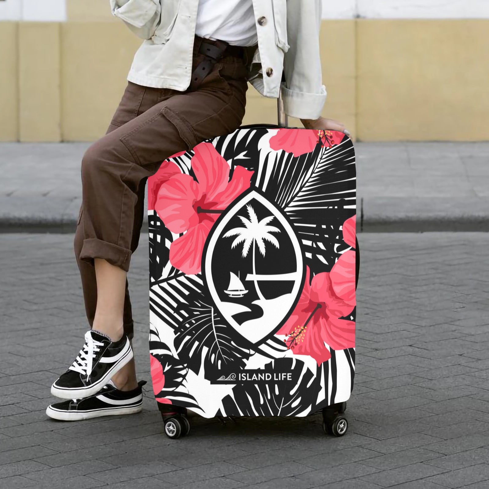Take your travels to the next level with our Guam Pink Black Hibiscus Leaves Luggage Cover. Made with a strong and stretchy polyester-spandex blend for a perfect fit and long-lasting wear. With a bold and vibrant print that won't fade, this luggage cover will keep the fun going on any journey.