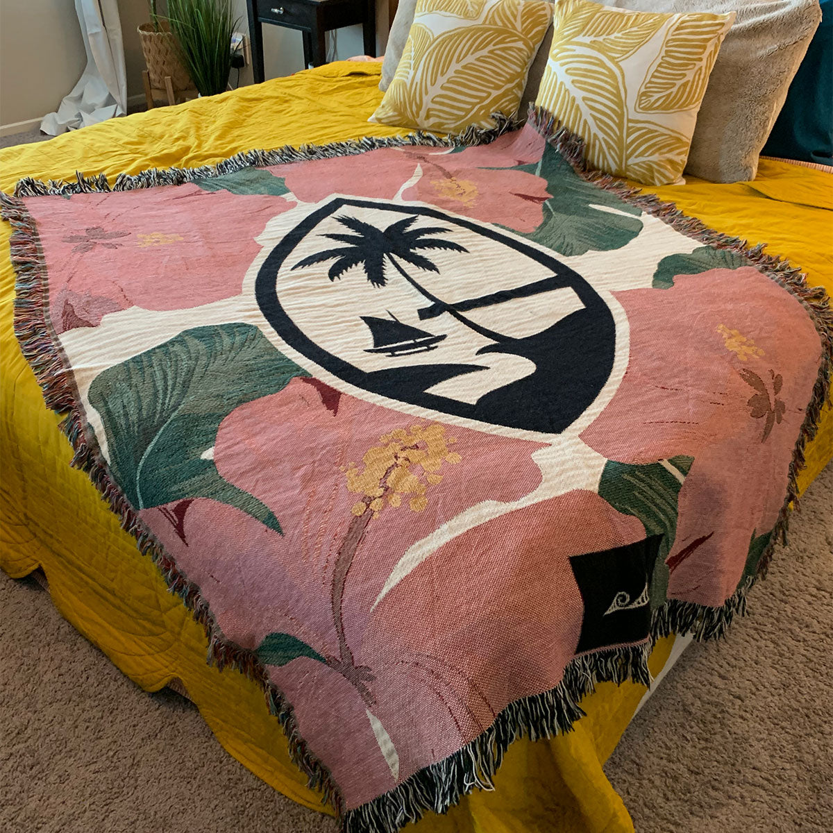 Our newest Guam woven blankets are perfect for every islander home. Use it as a wall decoration, a throw for your sofa, or even a picnic spread. Each blanket is made of 100% pure cotton. Crafted with an intricate woven production process, rather than a printed technique, our blanket creates a distinctive, more luxurious blanket. This durable, warm blanket with colorful fringed edges is a perfect reminder of home for islanders on Guam or off-island.