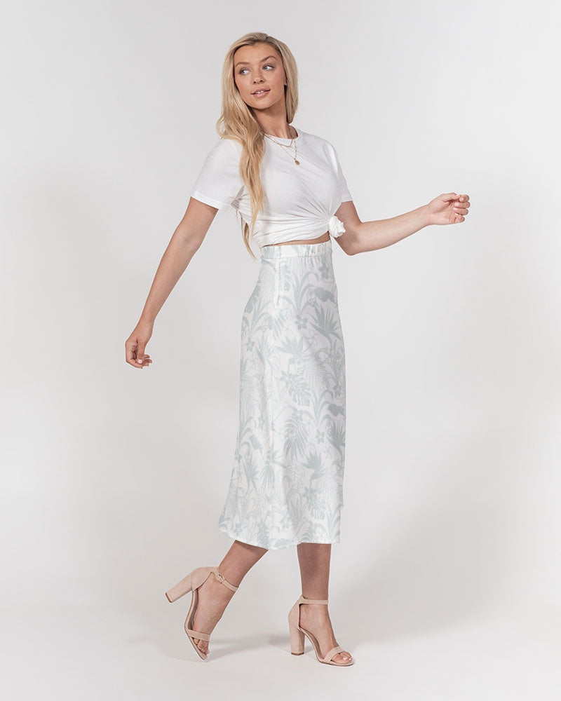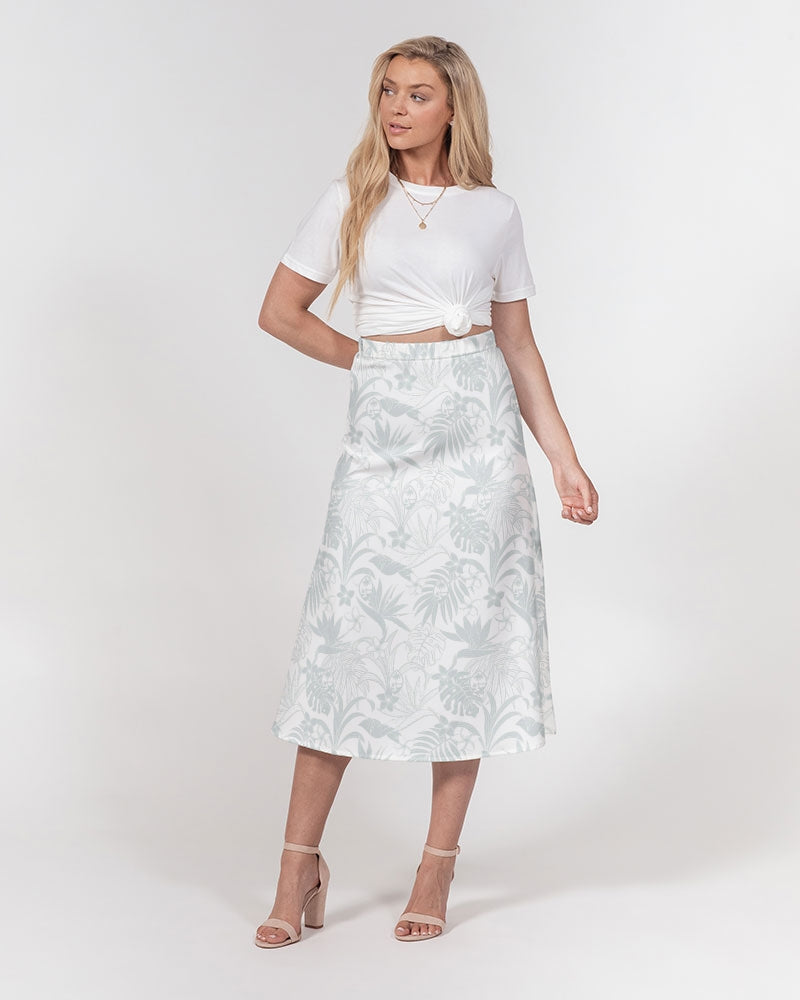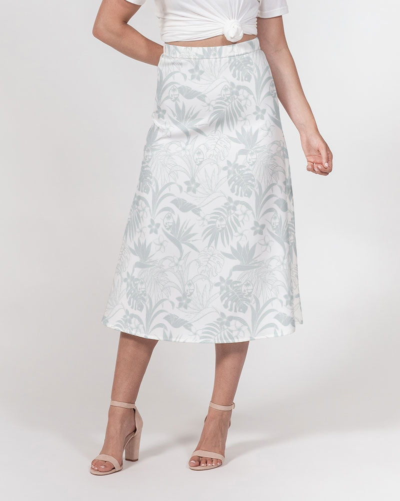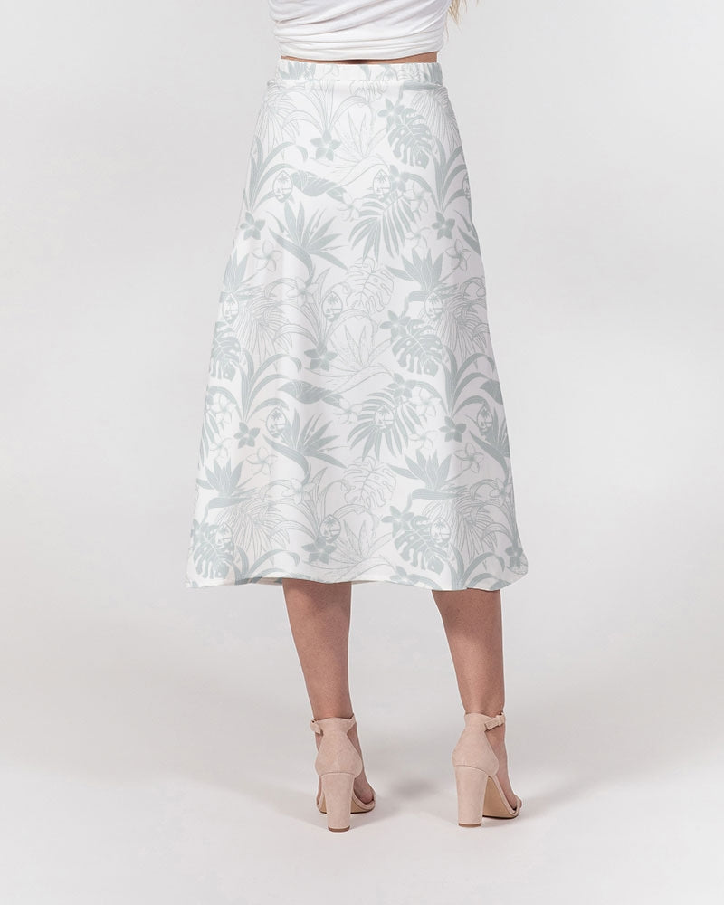 Guam Plumeria Tropical White Women's All-Over Print A-Line Midi Skirt