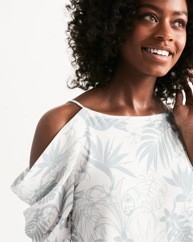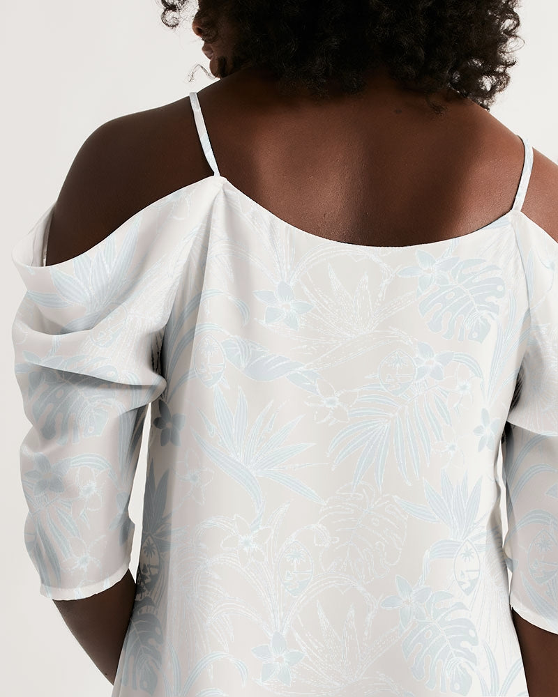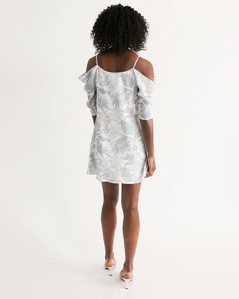 Guam Plumeria Tropical White Women's All-Over Print Open Shoulder A-Line Dress