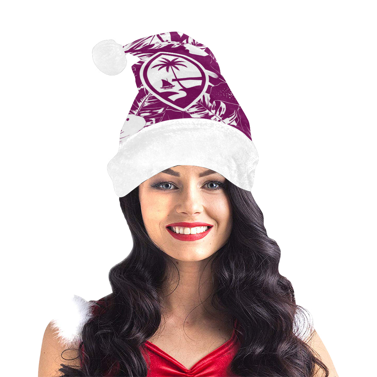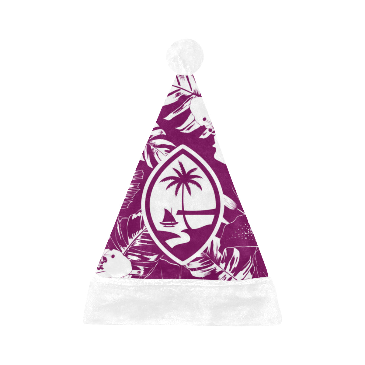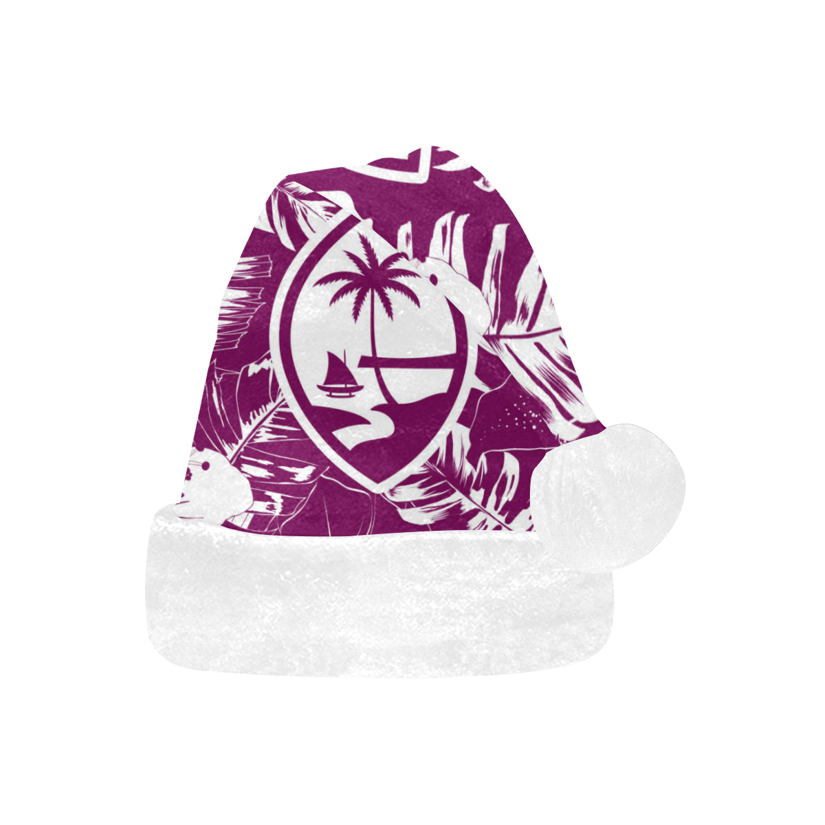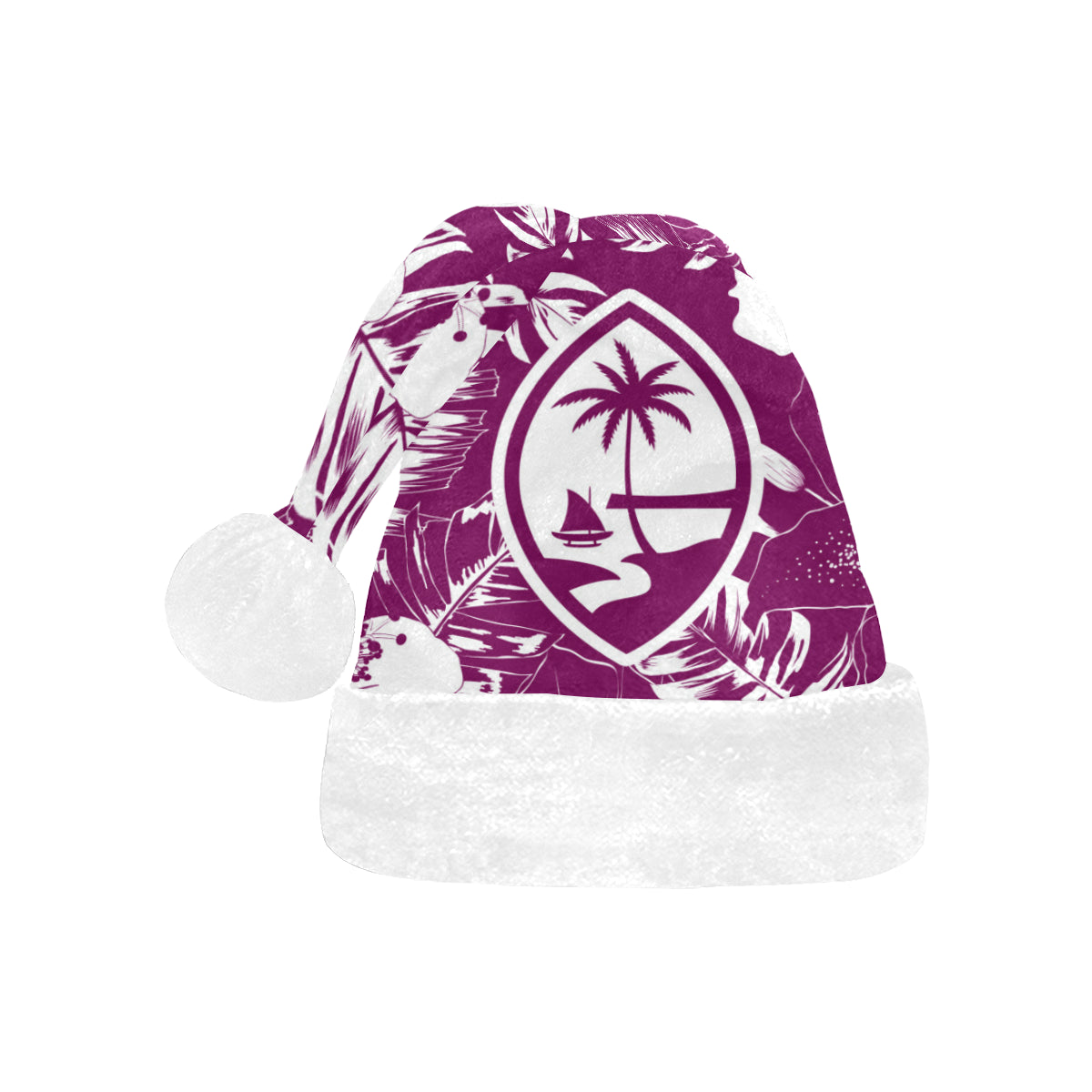 Celebrate an island Christmas with a custom designed Guam Purple Hibiscus Christmas Santa Hat! The design includes the Guam seal on a hibiscus flowers background. Perfect for that work Christmas Party or just hanging with family. Felis Nabidat!