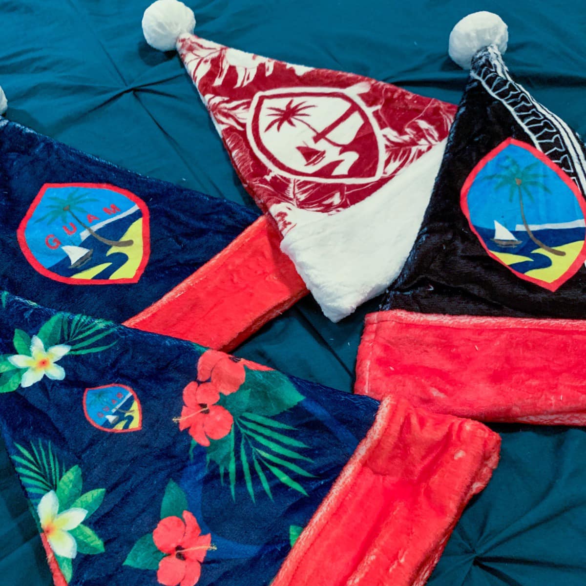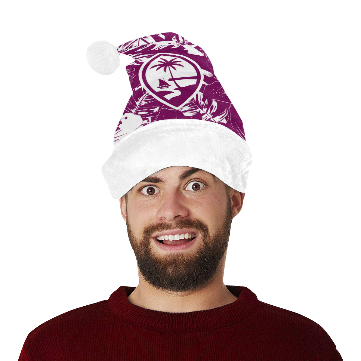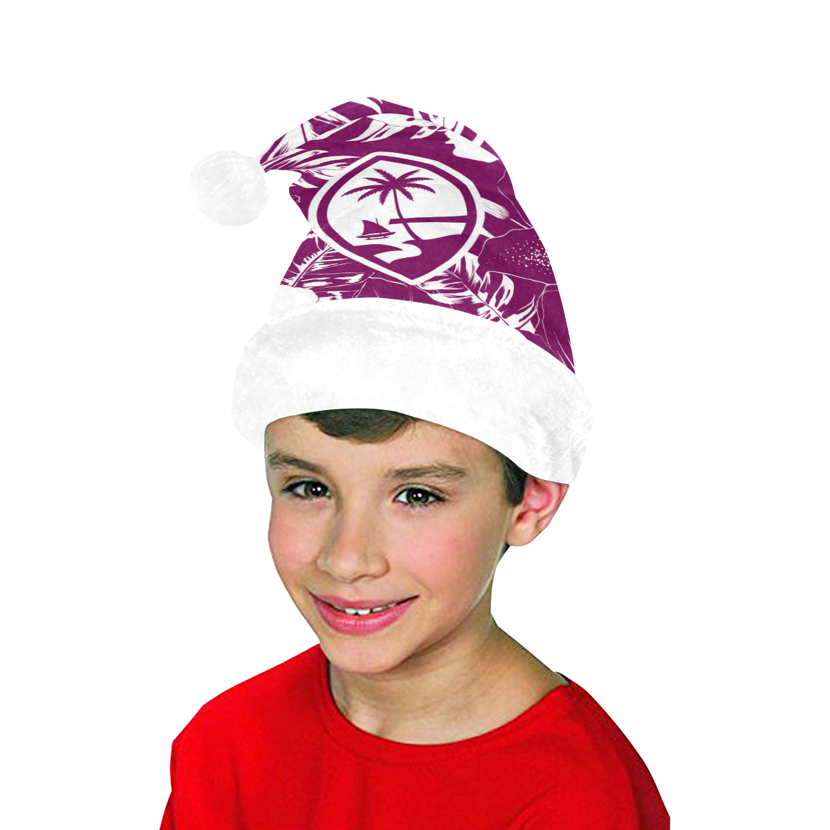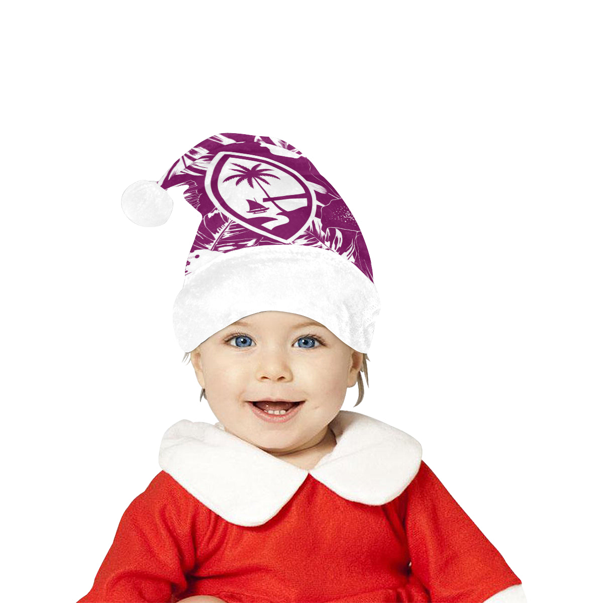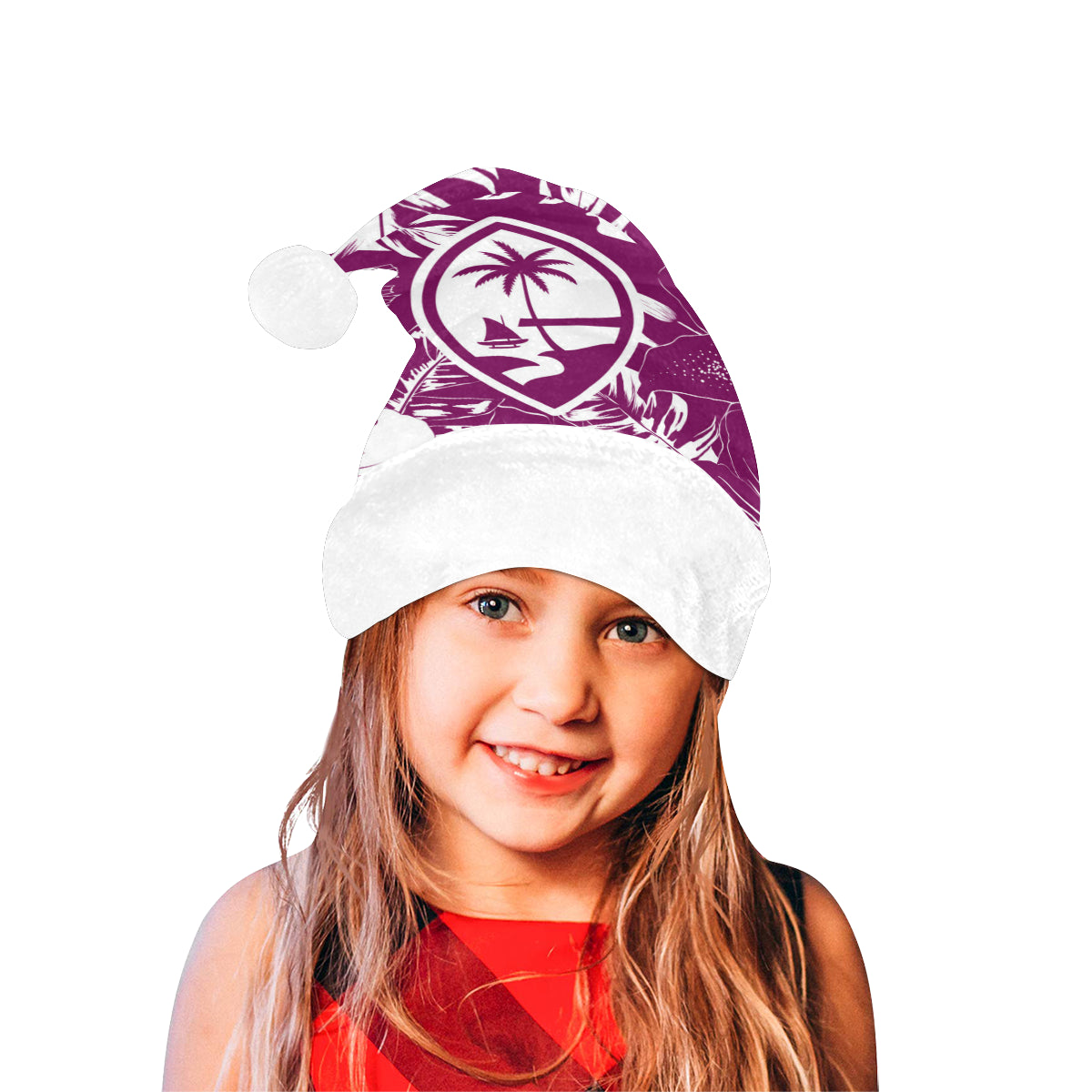 Celebrate an island Christmas with a custom designed Guam Purple Hibiscus Christmas Santa Hat! The design includes the Guam seal on a hibiscus flowers background. Perfect for that work Christmas Party or just hanging with family. Felis Nabidat!