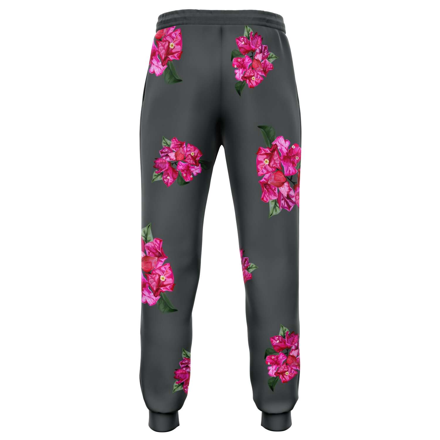 This unisex jogger features a soft and durable fabric that has a cotton feel to it. The brushed fleece on the inside will make this your most comfy jogger ever! This design features beautiful Puti Tai Nobio (bougainvillea) flowers on a solid gray background. Each panel is individually printed, cut and sewn to ensure a flawless graphic with no imperfections.