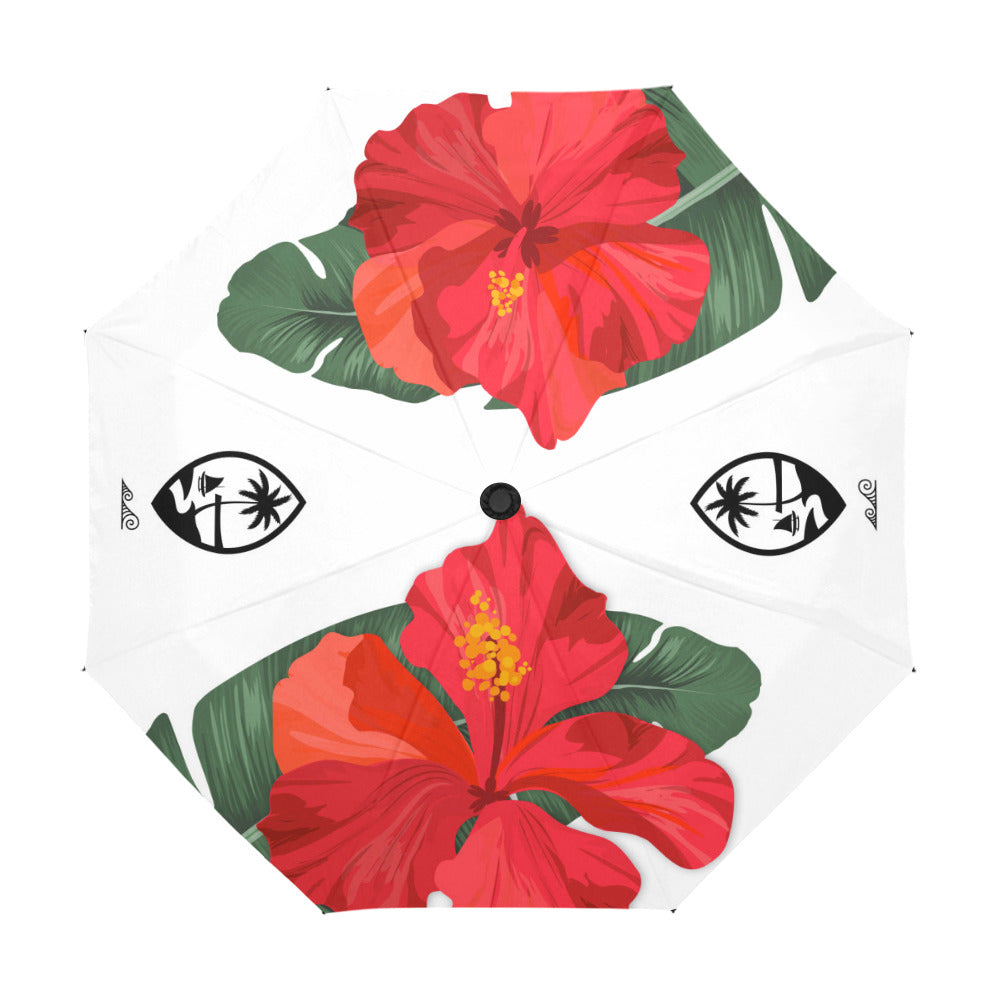 Guam Red Hibiscus Paradise White Anti-UV Auto Foldable Umbrella