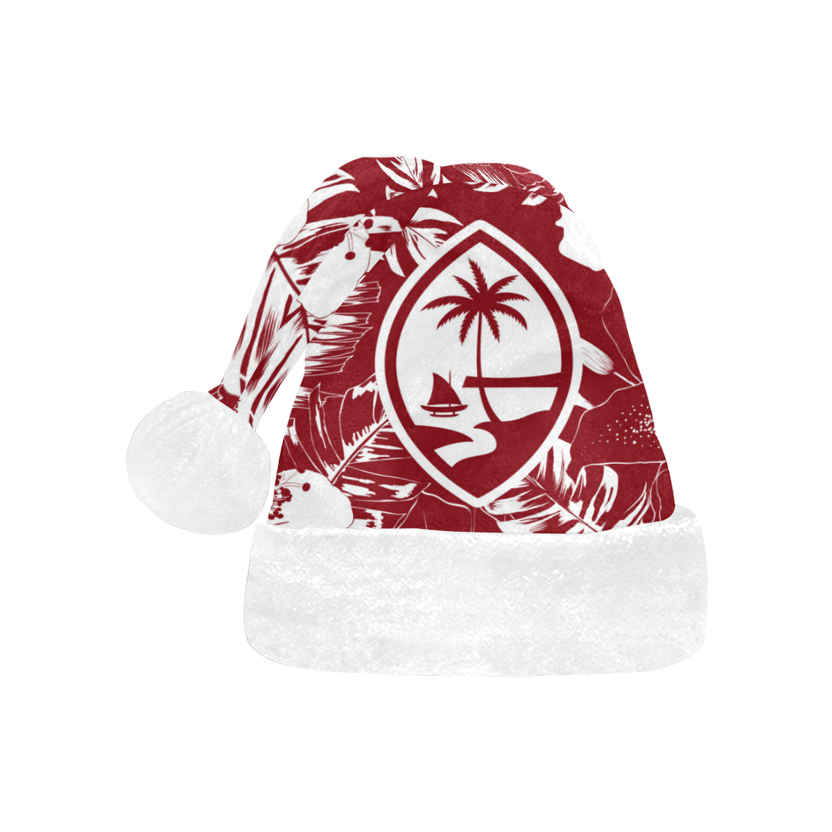 Celebrate a Chamorro Christmas with a custom designed Guam Red Hibiscus Christmas Santa Hat! The design includes the Guam seal on a hibiscus flowers background. Perfect for that work Christmas Party or just hanging with family. Felis Nabidat!
