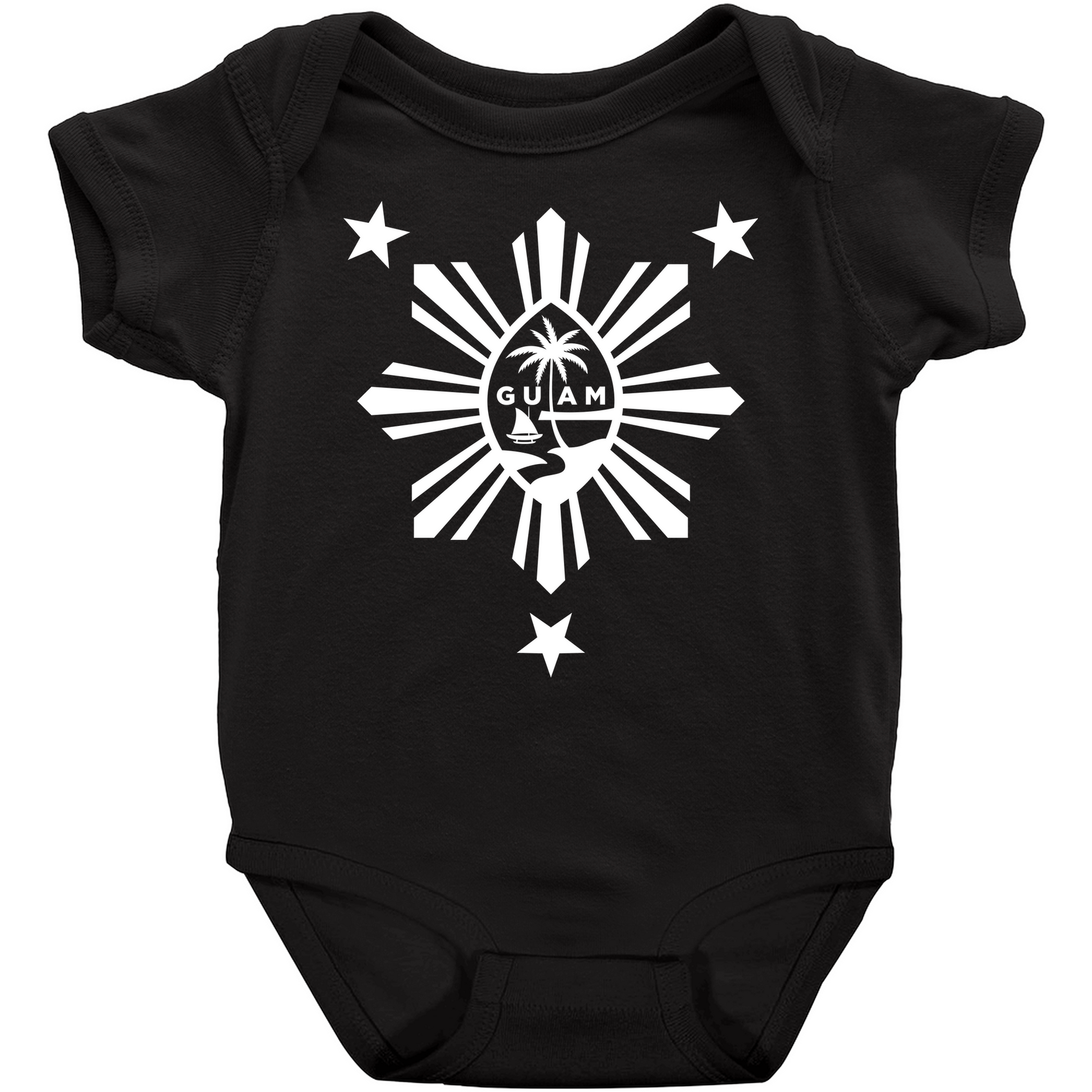 Simply awesome baby short sleeve bodysuit featuring a combination of the Guam Seal and the Philippines sun and stars. The perfect clothing piece for your island baby.