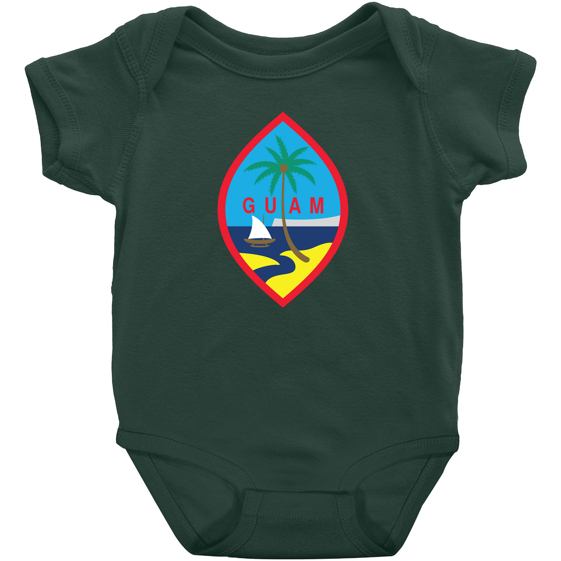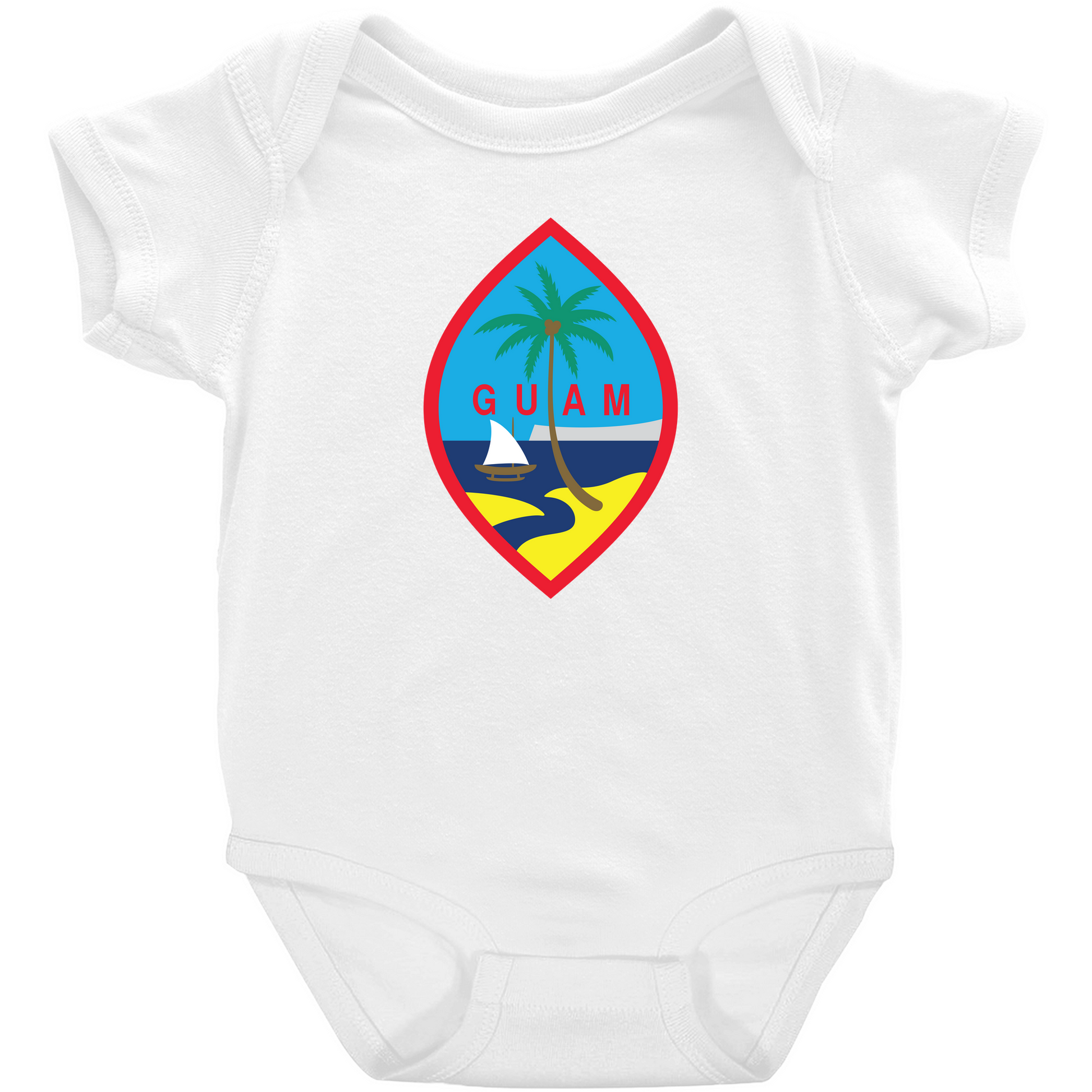 Simply adorable baby short sleeve bodysuit featuring the Guam seal upfront and center. The perfect little piece for your precious little islander.