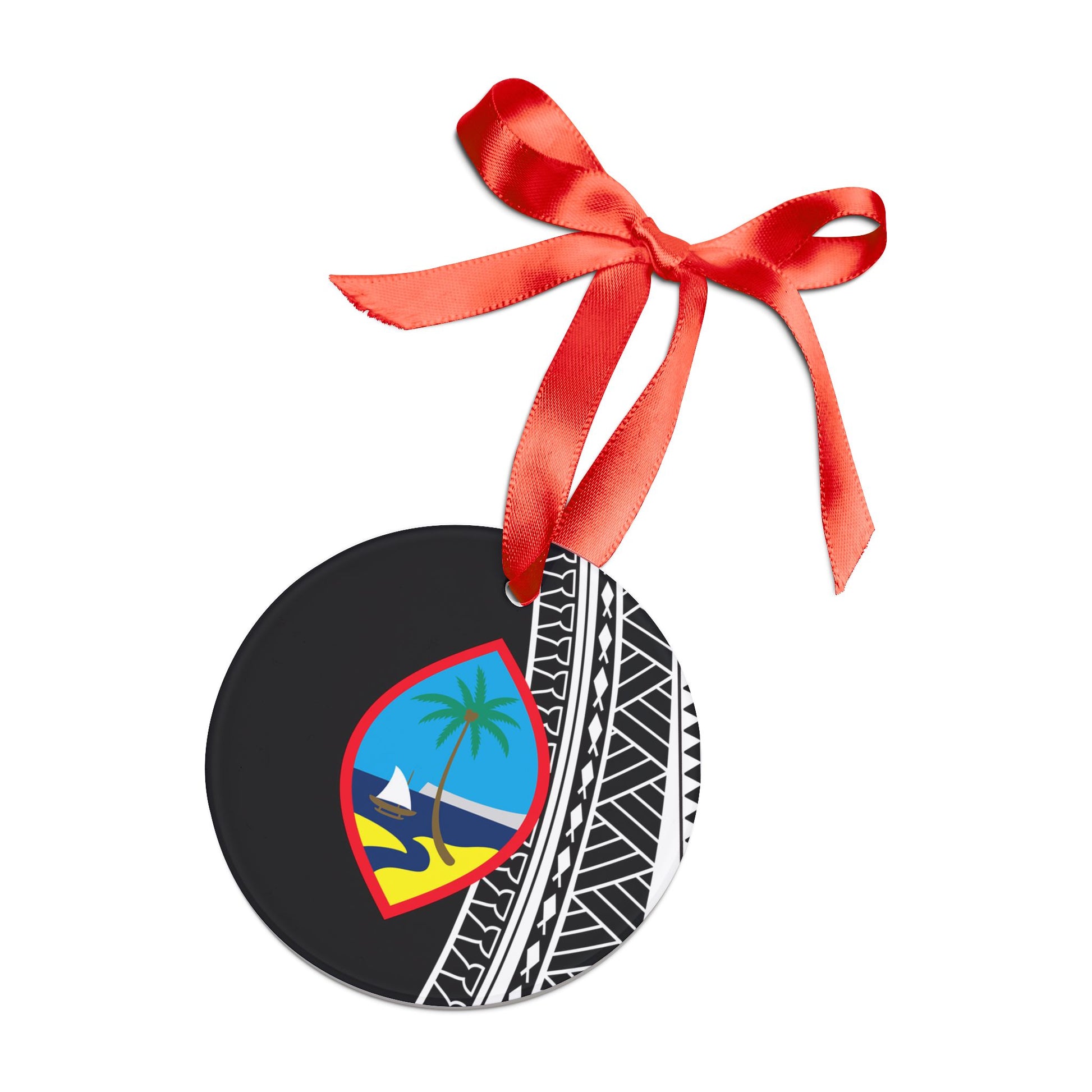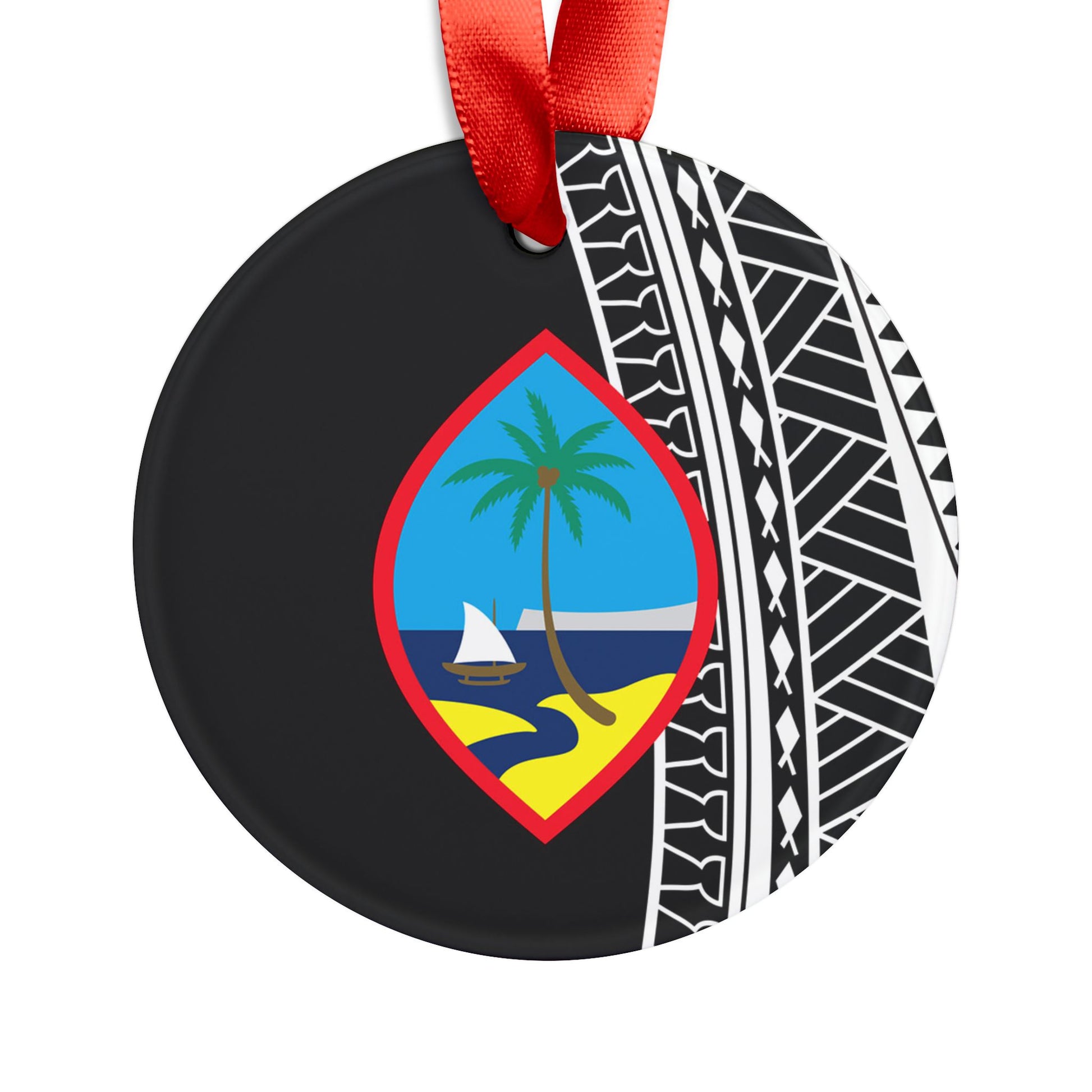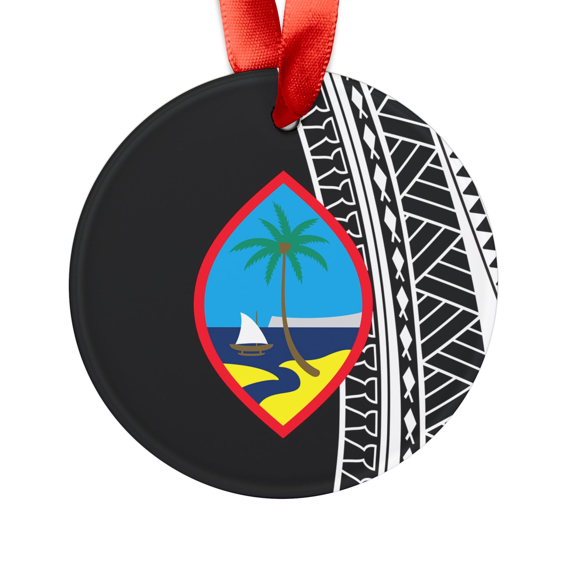 Guam Seal Black Tribal Acrylic Ornament with Ribbon