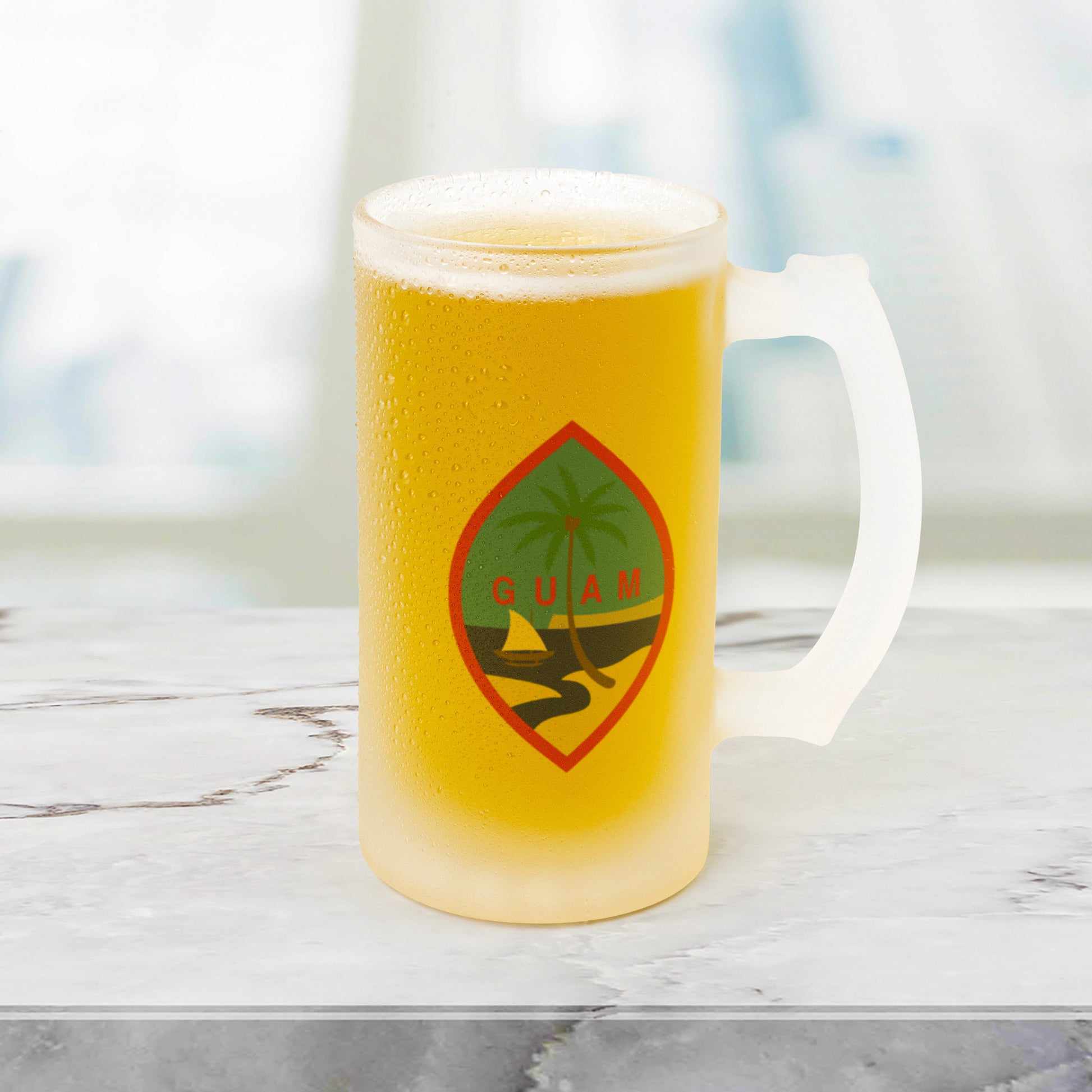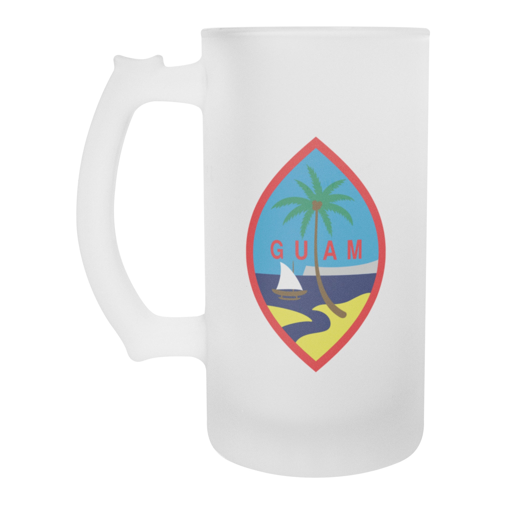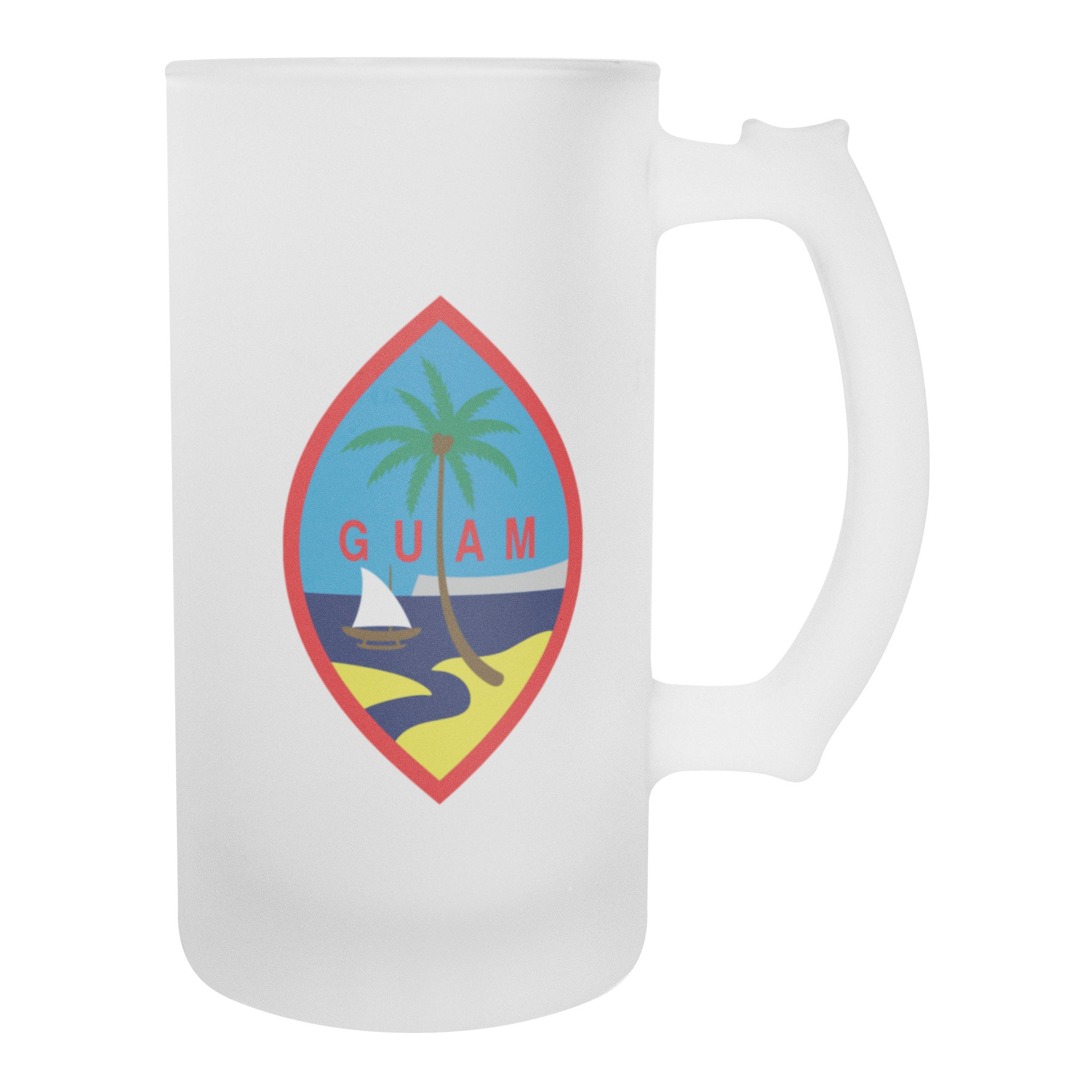 Greetings beer-lovers! Prepare to cheers to our amazing Guam 16oz Frosted Beer Stein! Imagine this: the classic pint glass design that feels amazing in your grip, with a partially see-through finish that showcases the vibrant hue of your preferred brew.