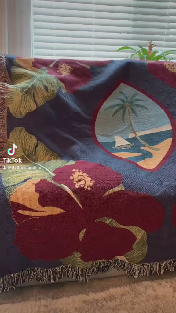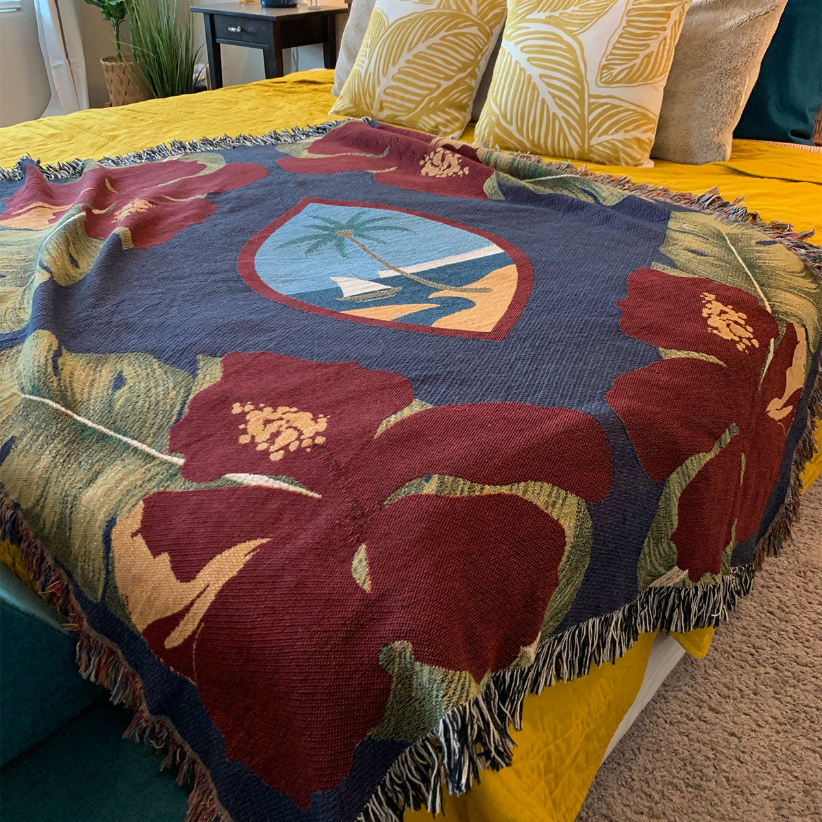 Our newest Guam woven blankets are perfect for every islander home. Use it as a wall decoration, a throw for your sofa, or even a picnic spread. Each blanket is made of 100% pure cotton. Crafted with an intricate woven production process, rather than a printed technique, our blanket creates a distinctive, more luxurious blanket. This durable, warm blanket with colorful fringed edges is a perfect reminder of home for islanders on Guam or off-island.