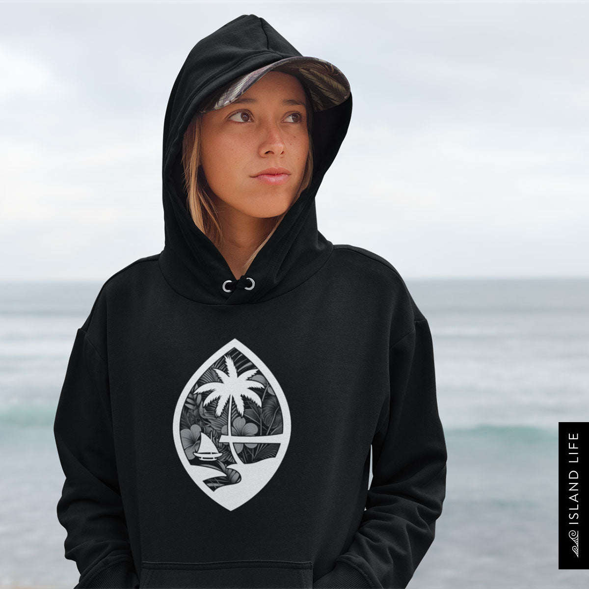 Guam Seal Monochrome Floral Adult Heavy Blend Pullover Hoodie