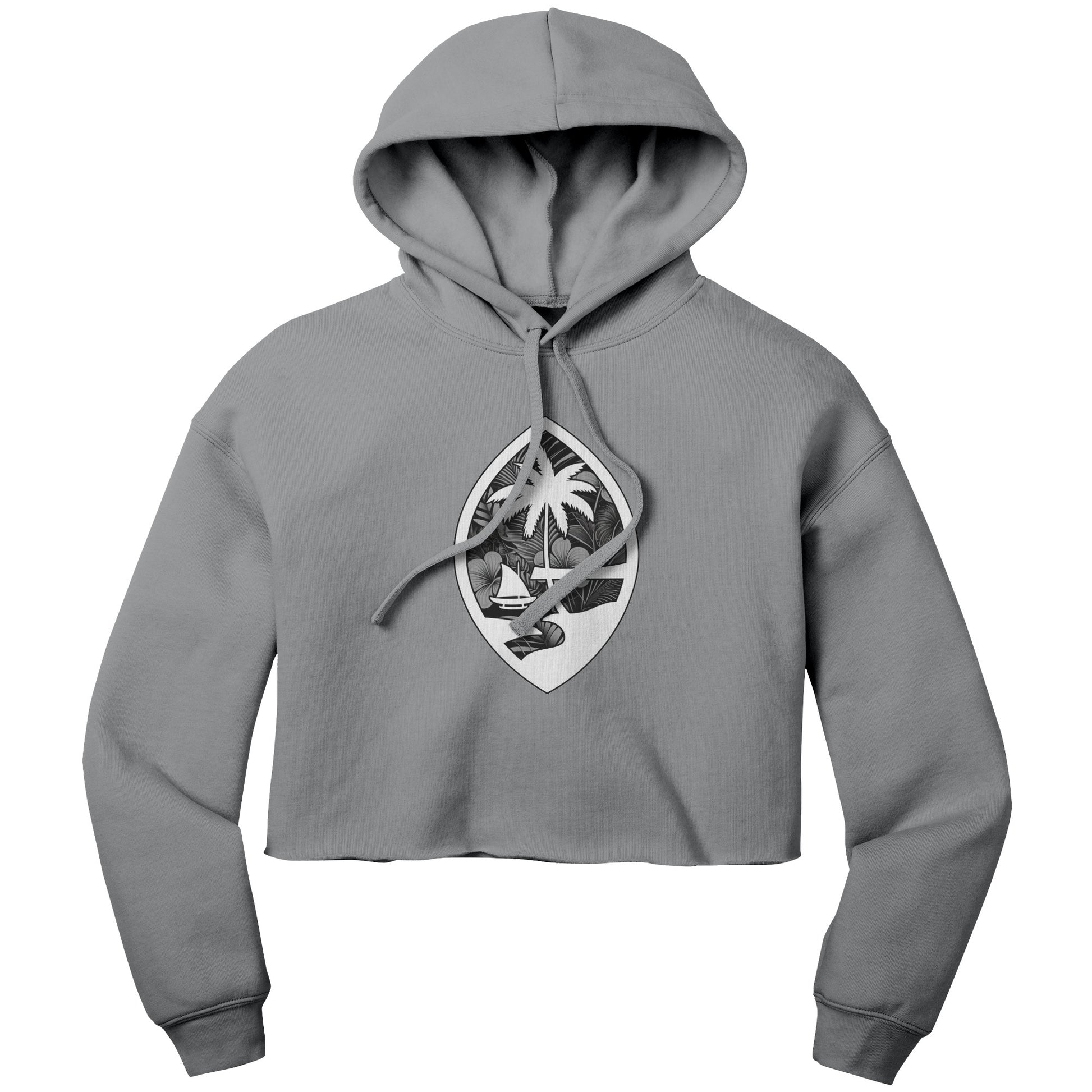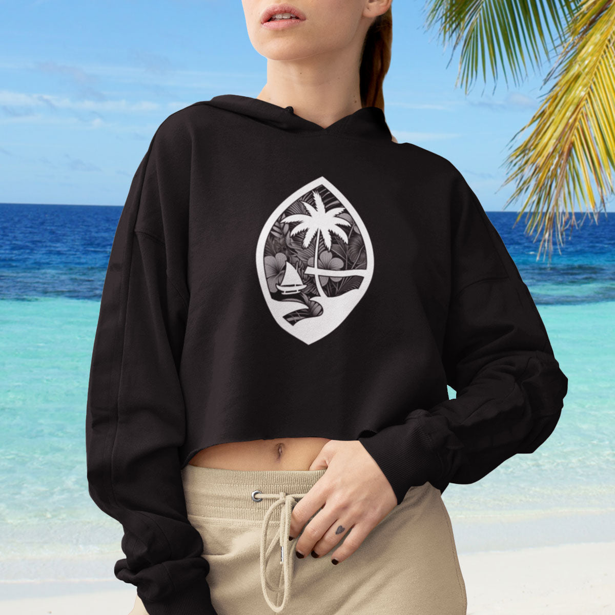Show off your island pride with this comfy crop hoodie - featuring the Guam seal with a monochromatic tropical flower background. It's the perfect way to show everyone you got bula 'Guam Love' - and keep cozy while you're at it!