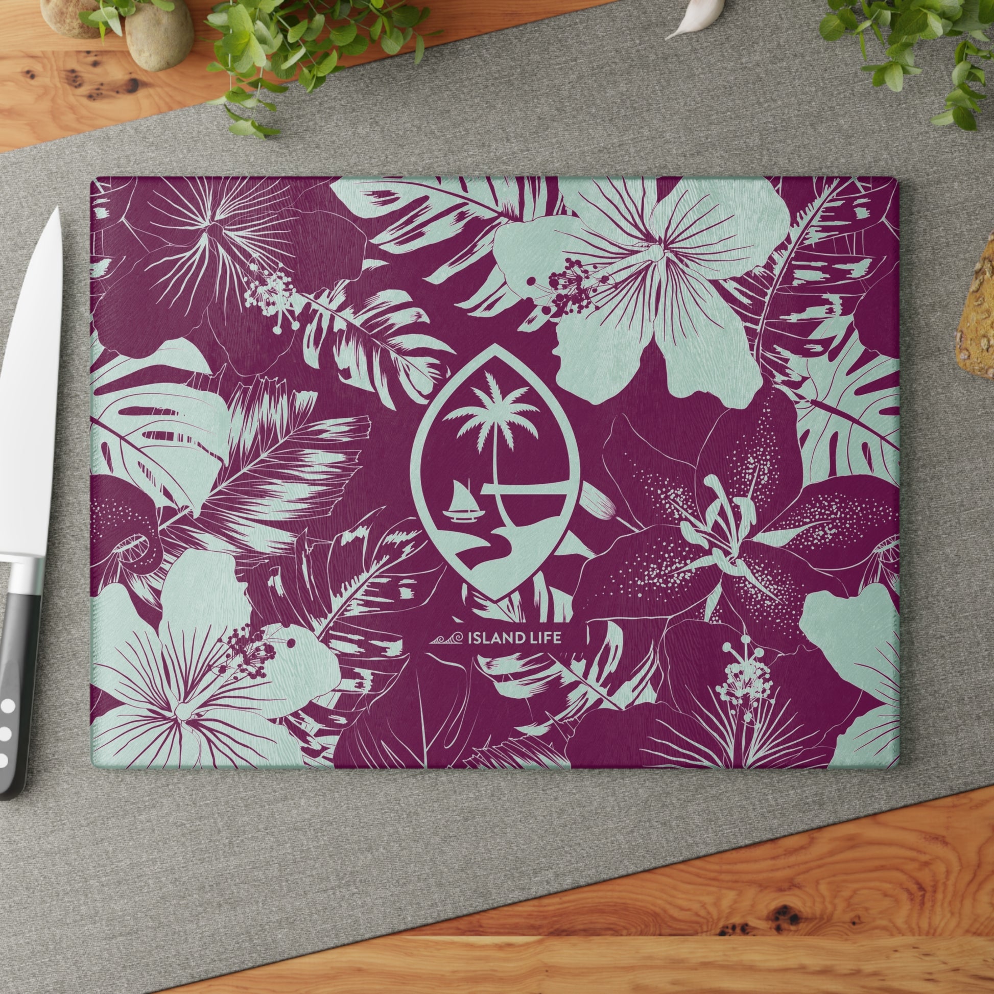 Guam Seal Purple Hibiscus Glass Cutting Board