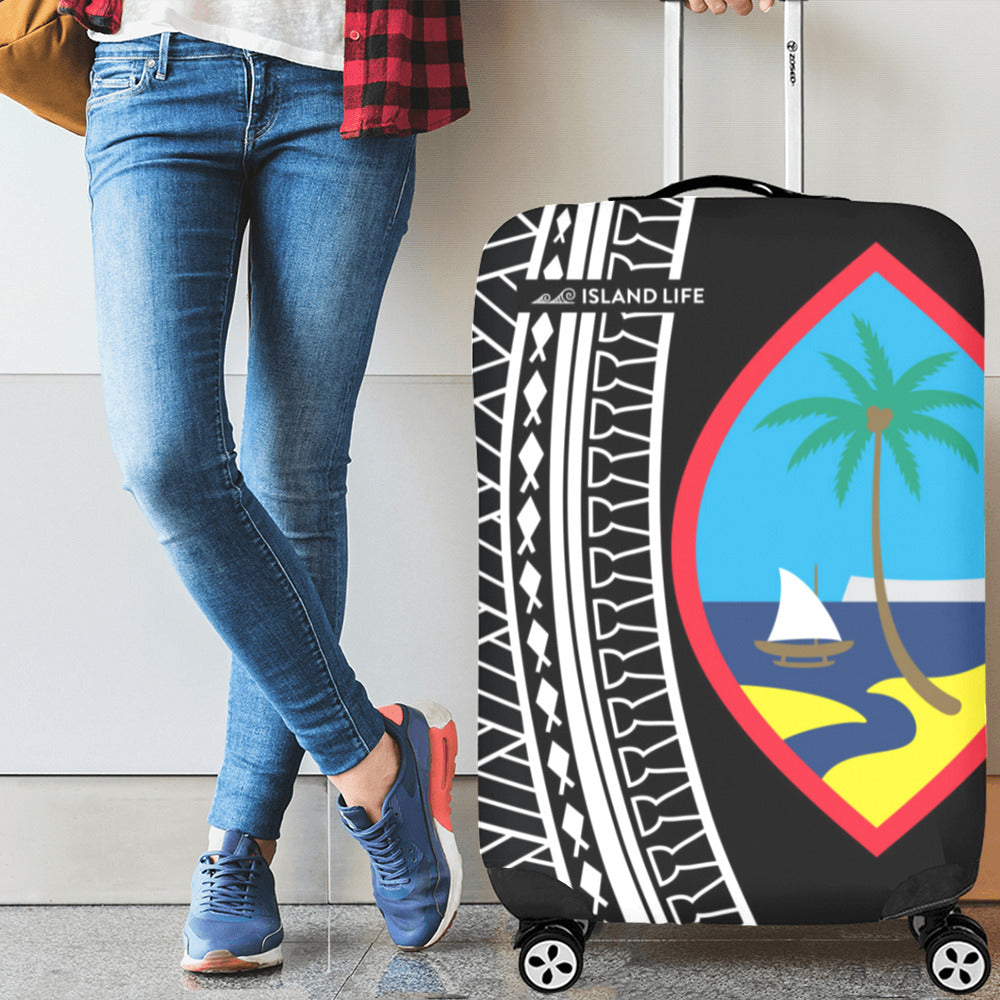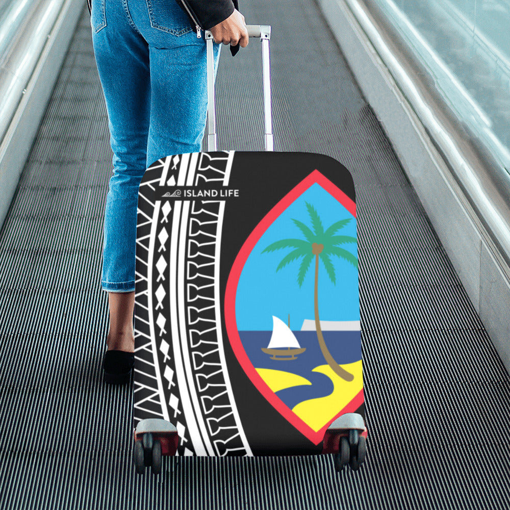 Take your travels to the next level with our Guam Seal Tribal Black Luggage Cover. Made with a strong and stretchy polyester-spandex blend for a perfect fit and long-lasting wear. With a bold and vibrant print that won't fade, this luggage cover will keep the fun going on any journey.