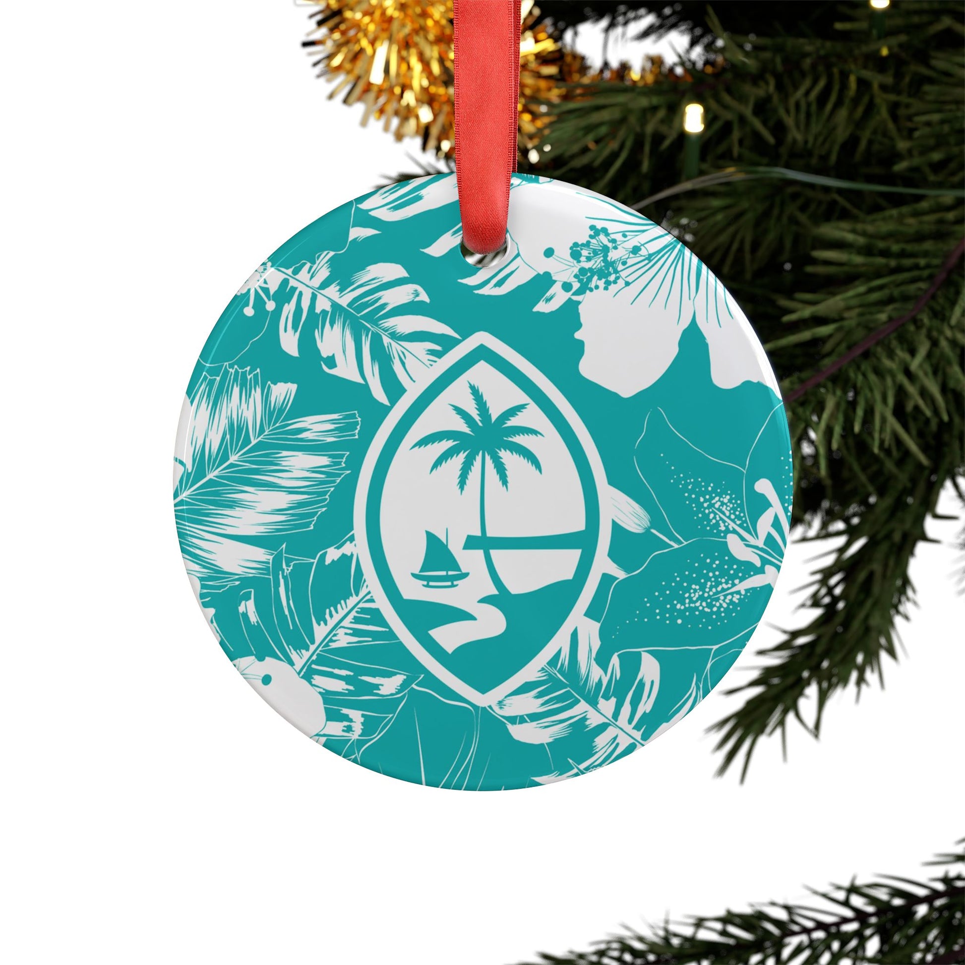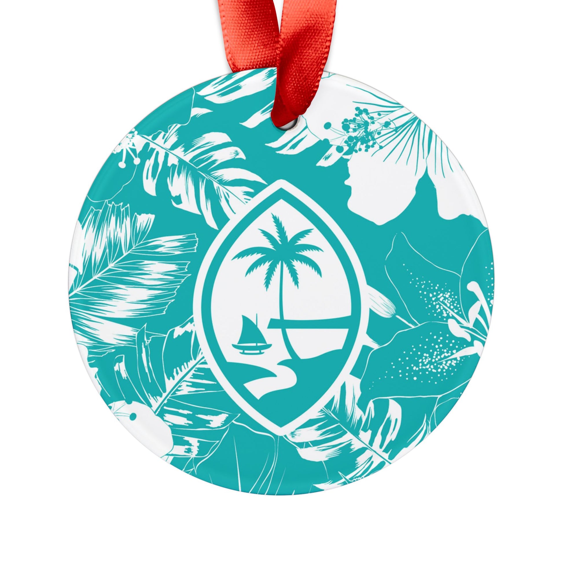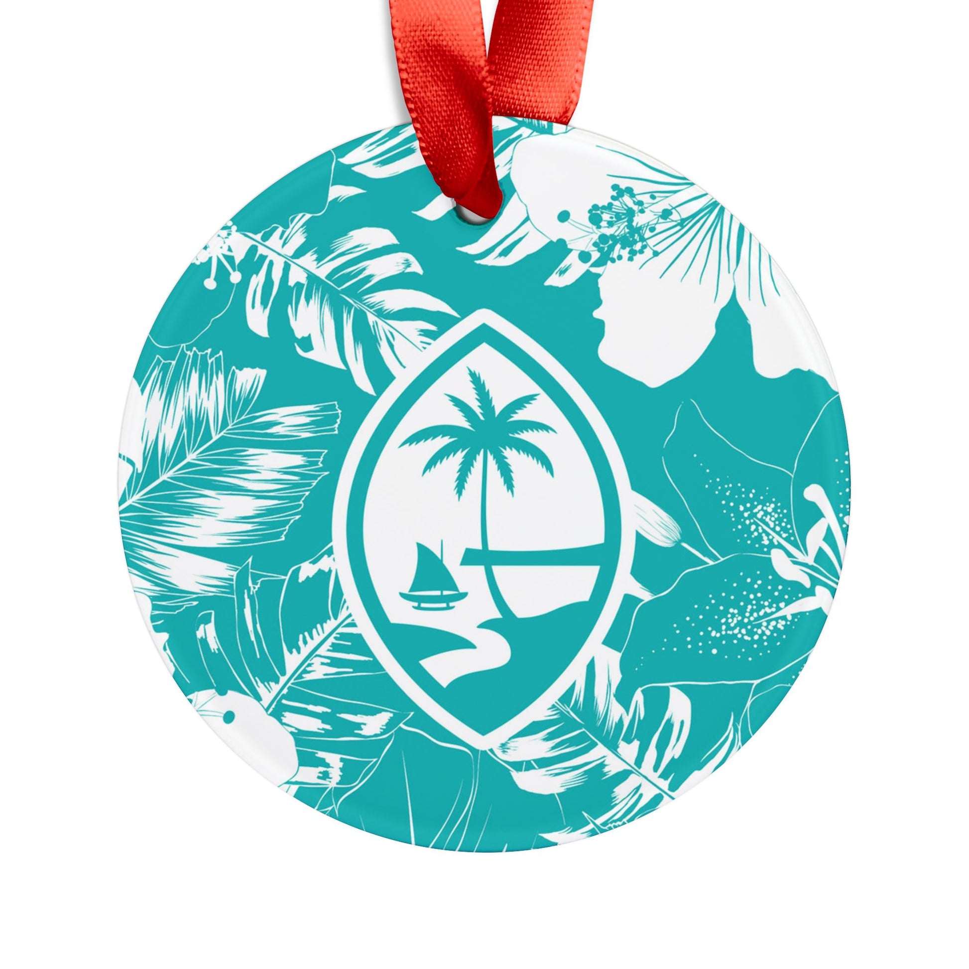 Guam Teal Hibiscus Acrylic Ornament with Ribbon