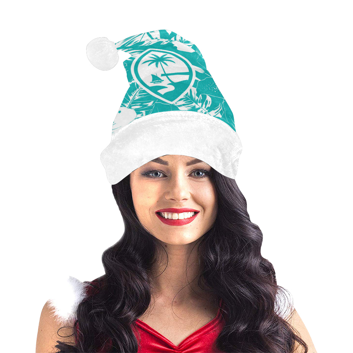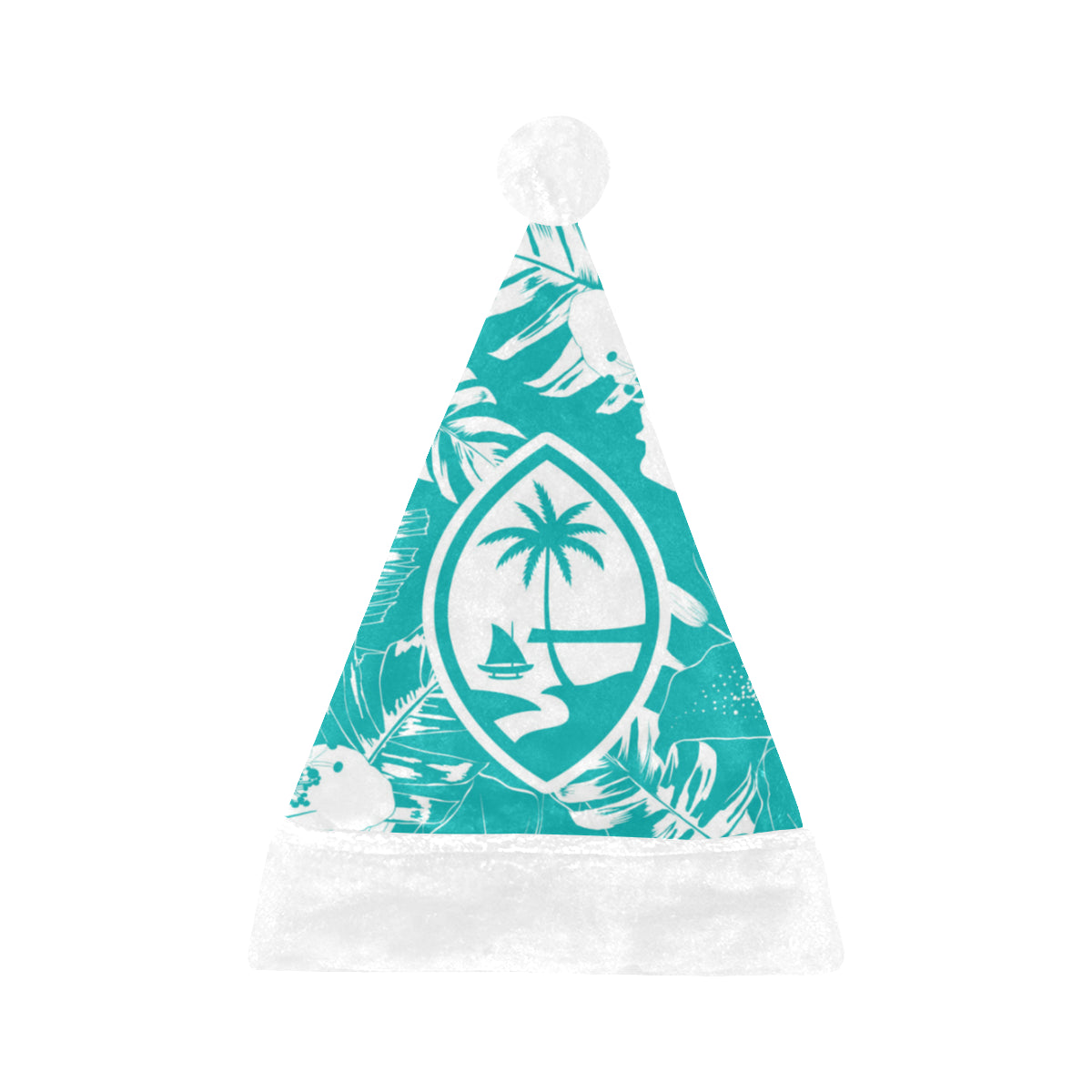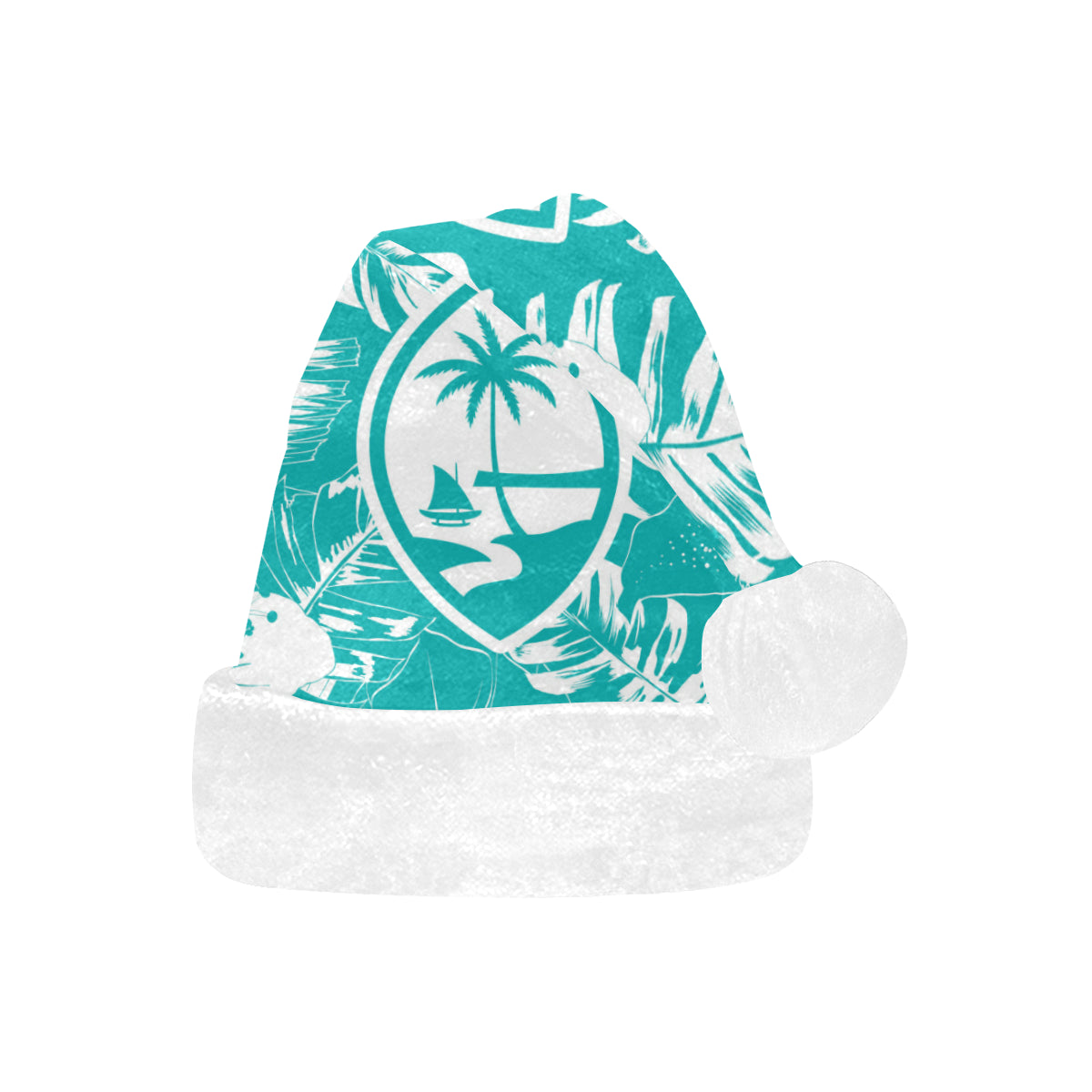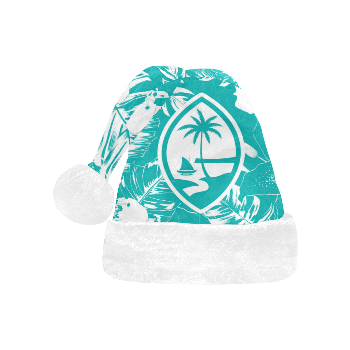 Celebrate an island Christmas with a custom designed Guam Teal Hibiscus Christmas Santa Hat! The design includes the Guam seal on a hibiscus flowers background. Perfect for that work Christmas Party or just hanging with family. Felis Nabidat!