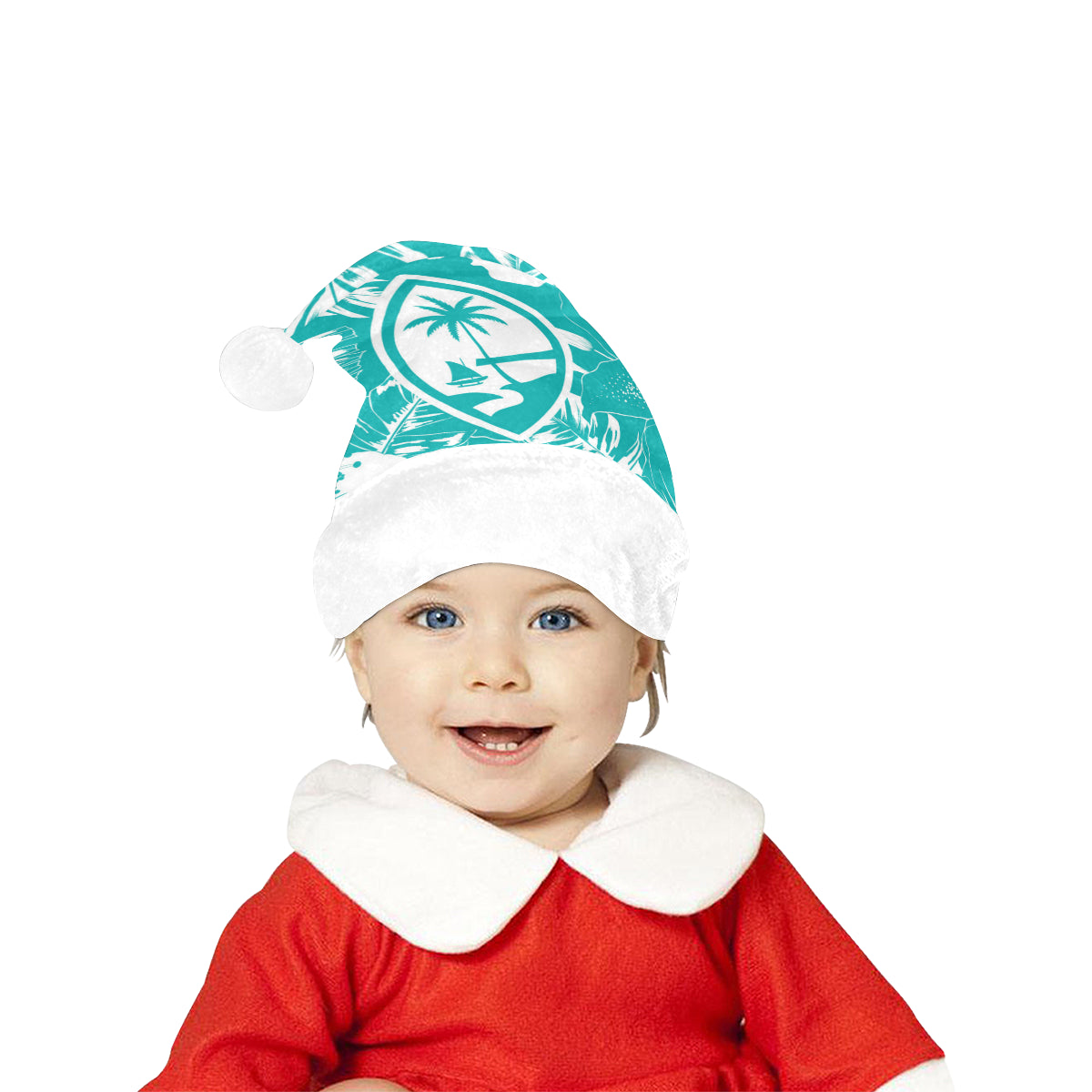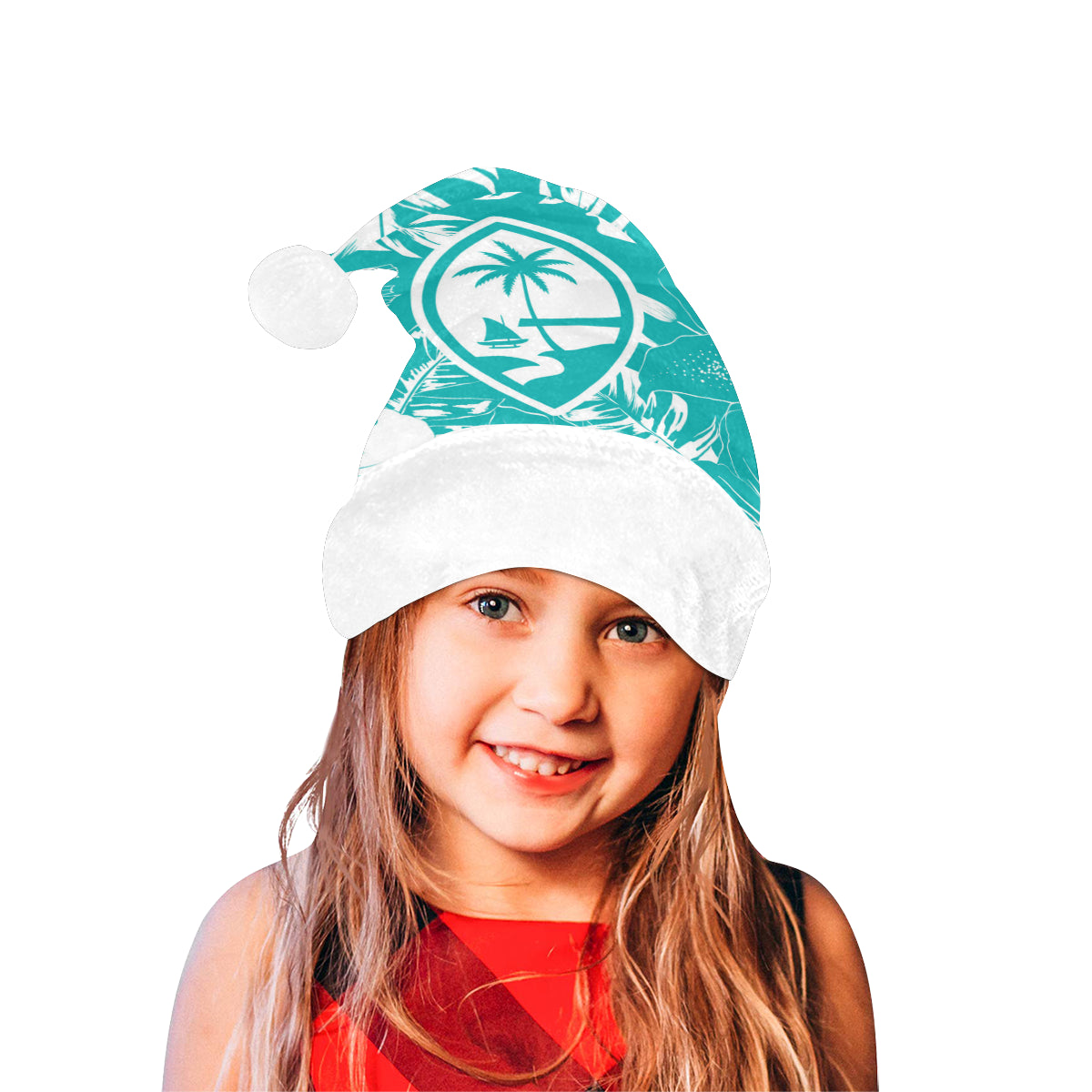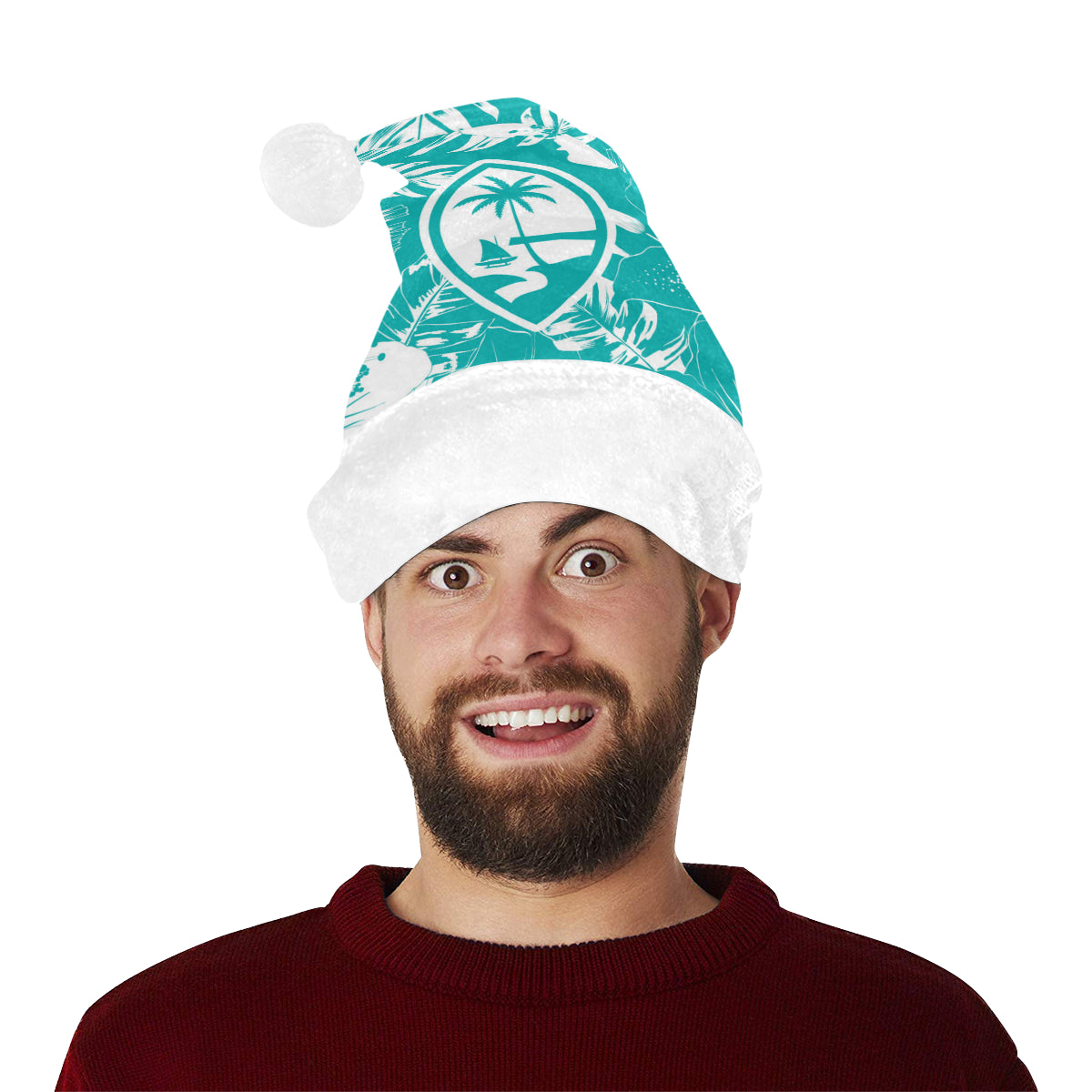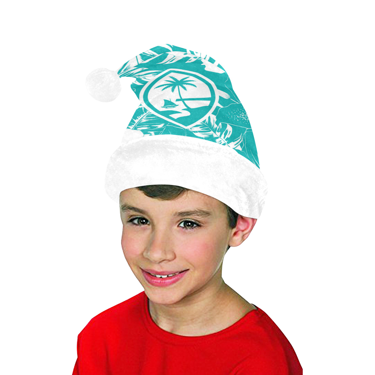 Celebrate an island Christmas with a custom designed Guam Teal Hibiscus Christmas Santa Hat! The design includes the Guam seal on a hibiscus flowers background. Perfect for that work Christmas Party or just hanging with family. Felis Nabidat!