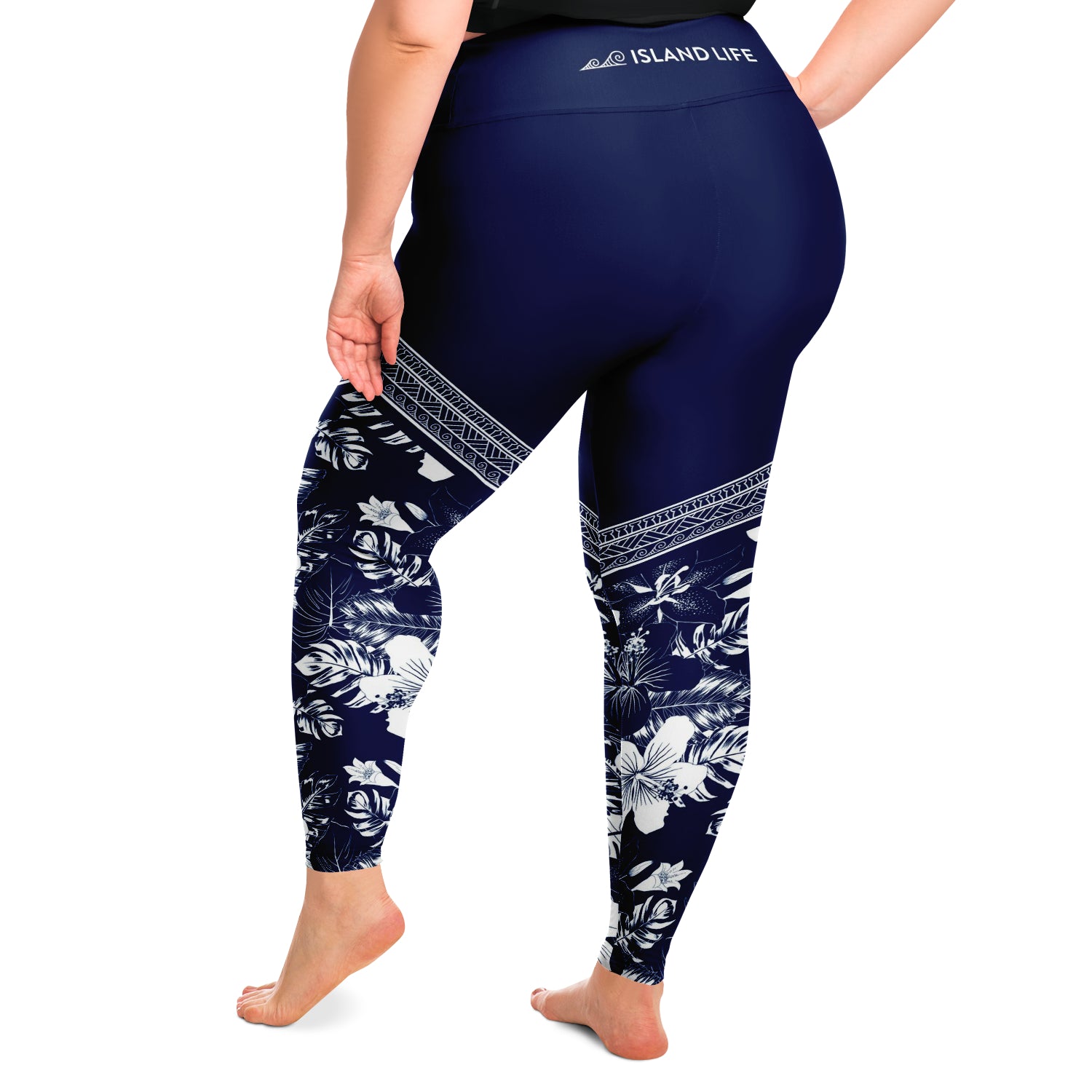 Guam CNMI Tribal Blue Hibiscus Curvy Leggings
