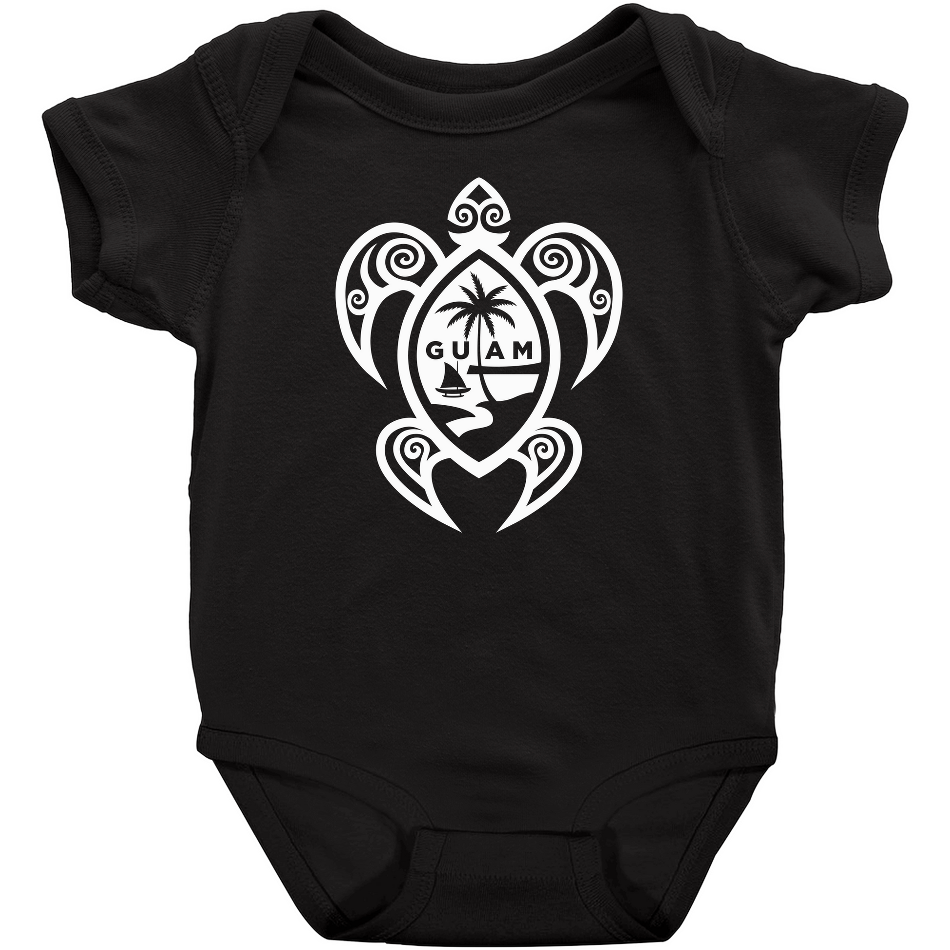 Simply adorable baby short sleeve bodysuit featuring the Guam seal inside of a tribal designed turtle. The perfect little gift for your precious baby.