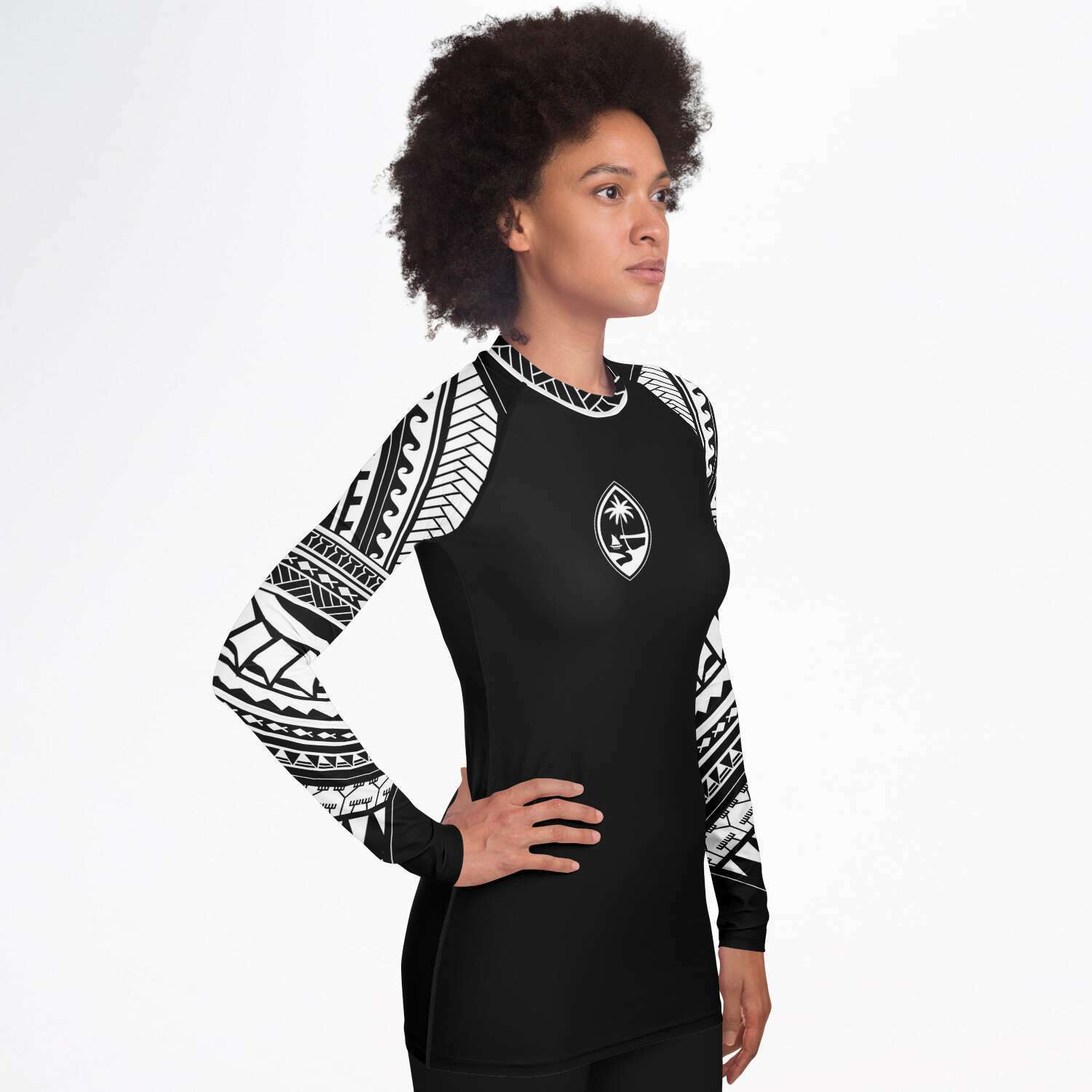 Guam Tribal Women's Black White Rashguard