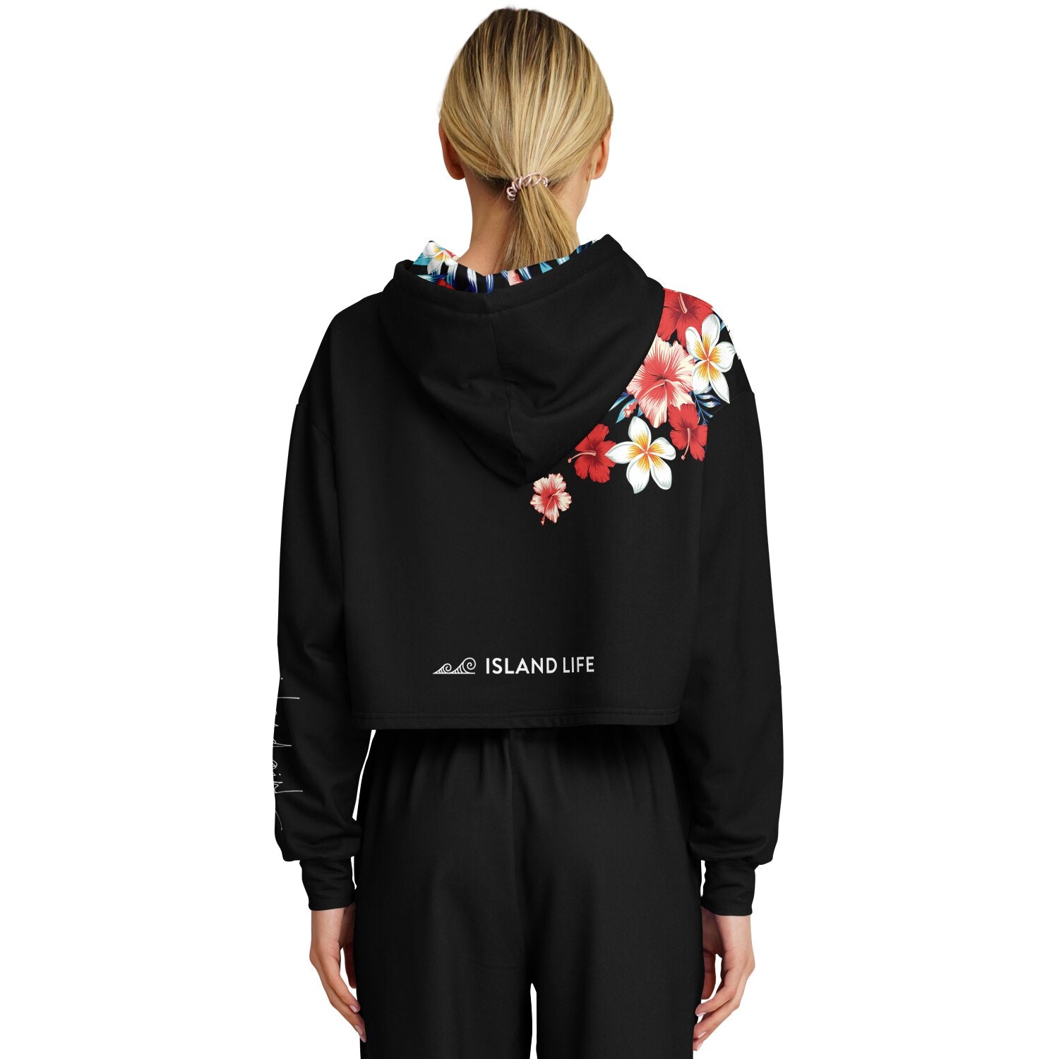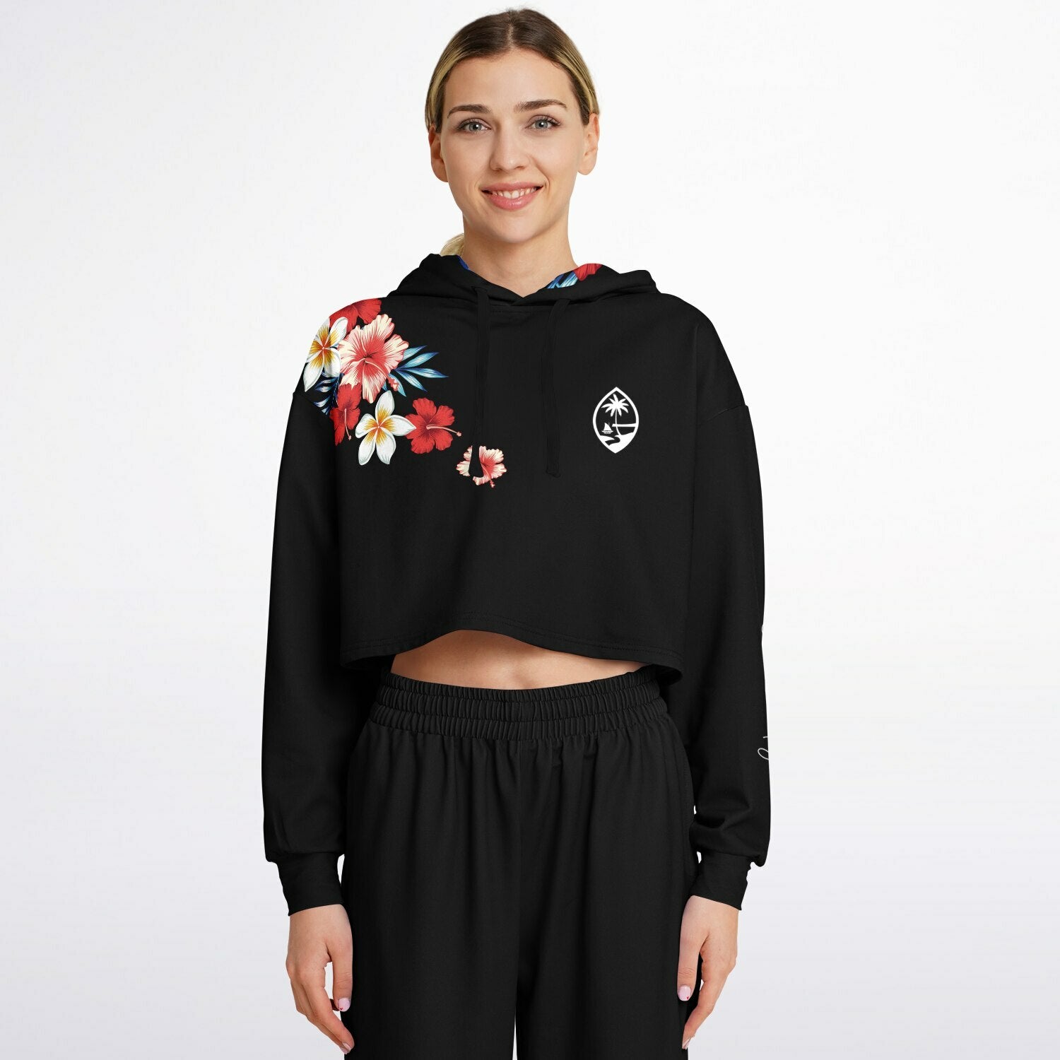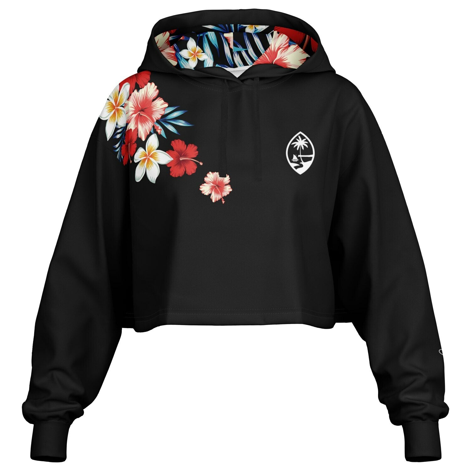 Indulge in island flair with our Islander Guam Tropical Floral Cropped Hoodie - a delightful mix of sophistication, coziness, and robustness. This hoodie is crafted to keep you on-trend while providing the utmost comfort and flexibility for your everyday activities. Made with a premium blend of cotton, polyester, and spandex, this hoodie guarantees both style and comfort.