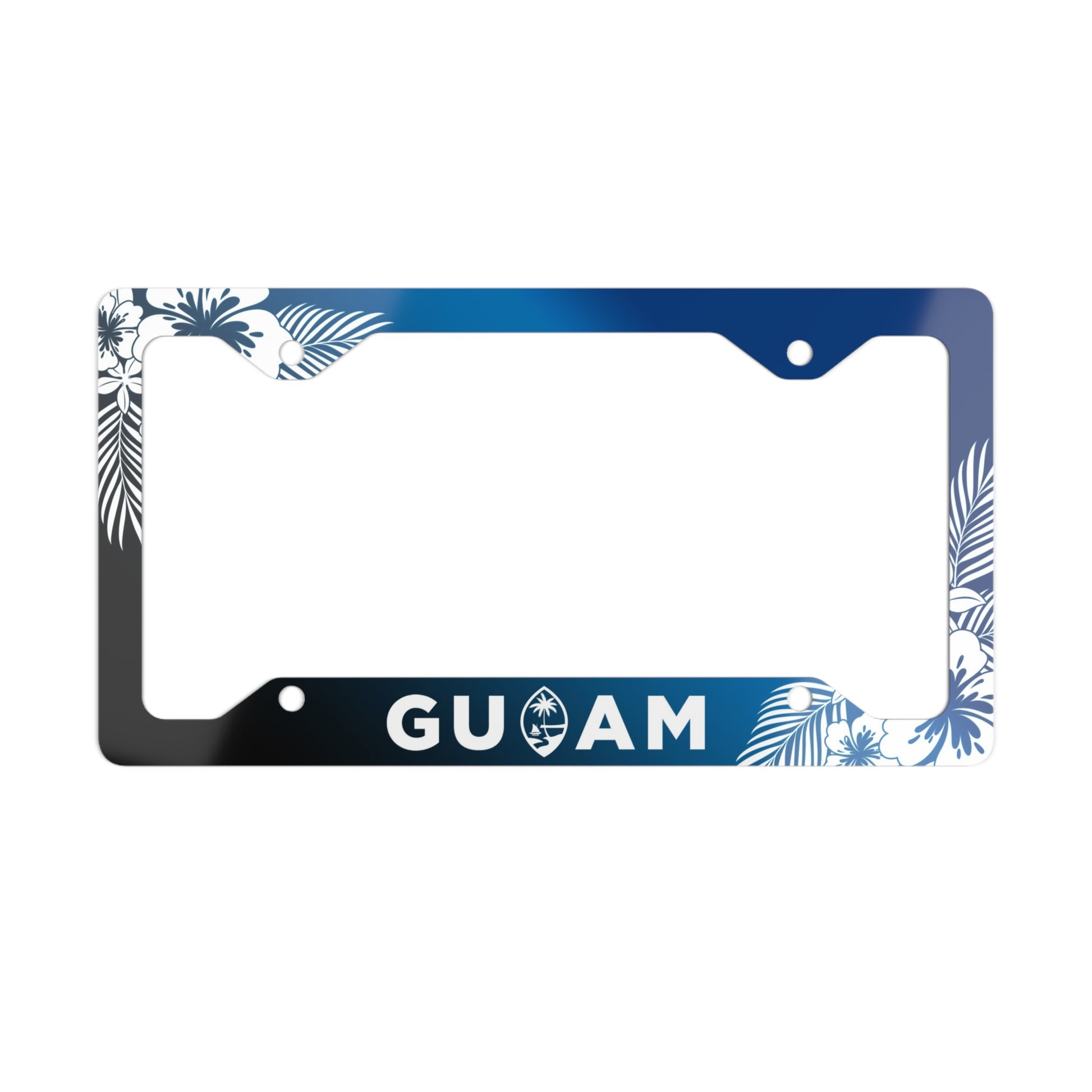 Guam Tropical Hibiscus Blue Metal License Plate Frame