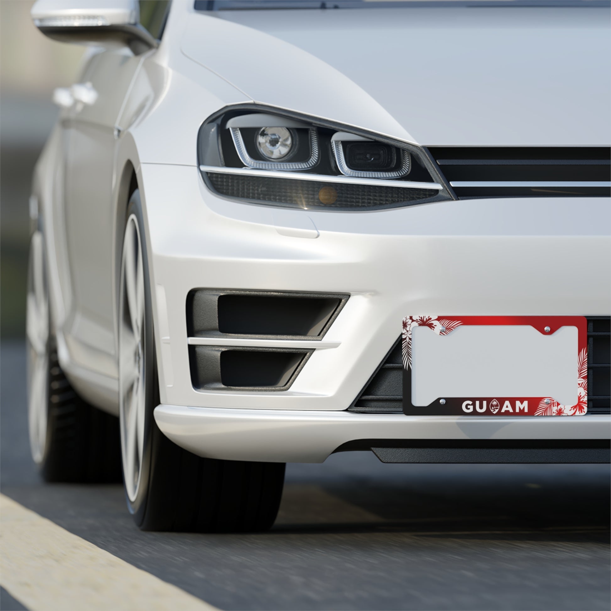 Guam Tropical Hibiscus Red Metal License Plate Frame