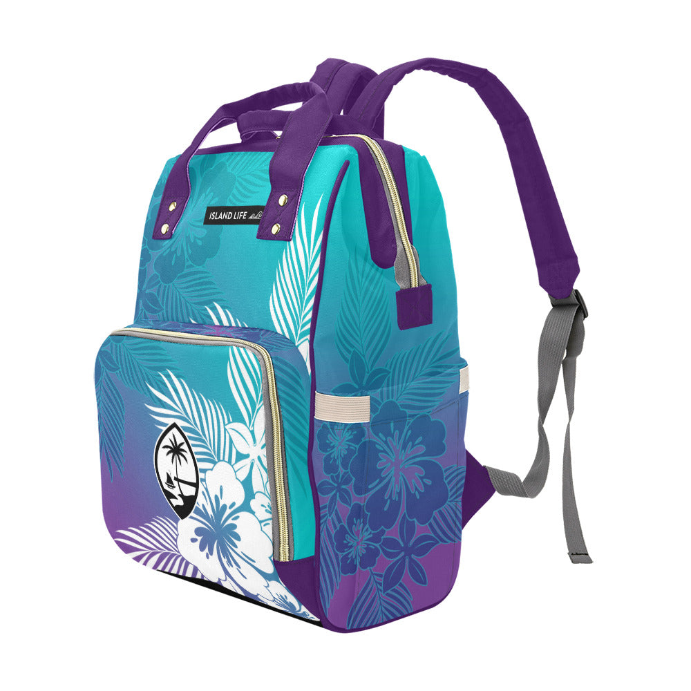 Guam Tropical Hibiscus Teal Purple Baby Diaper Backpack Bag