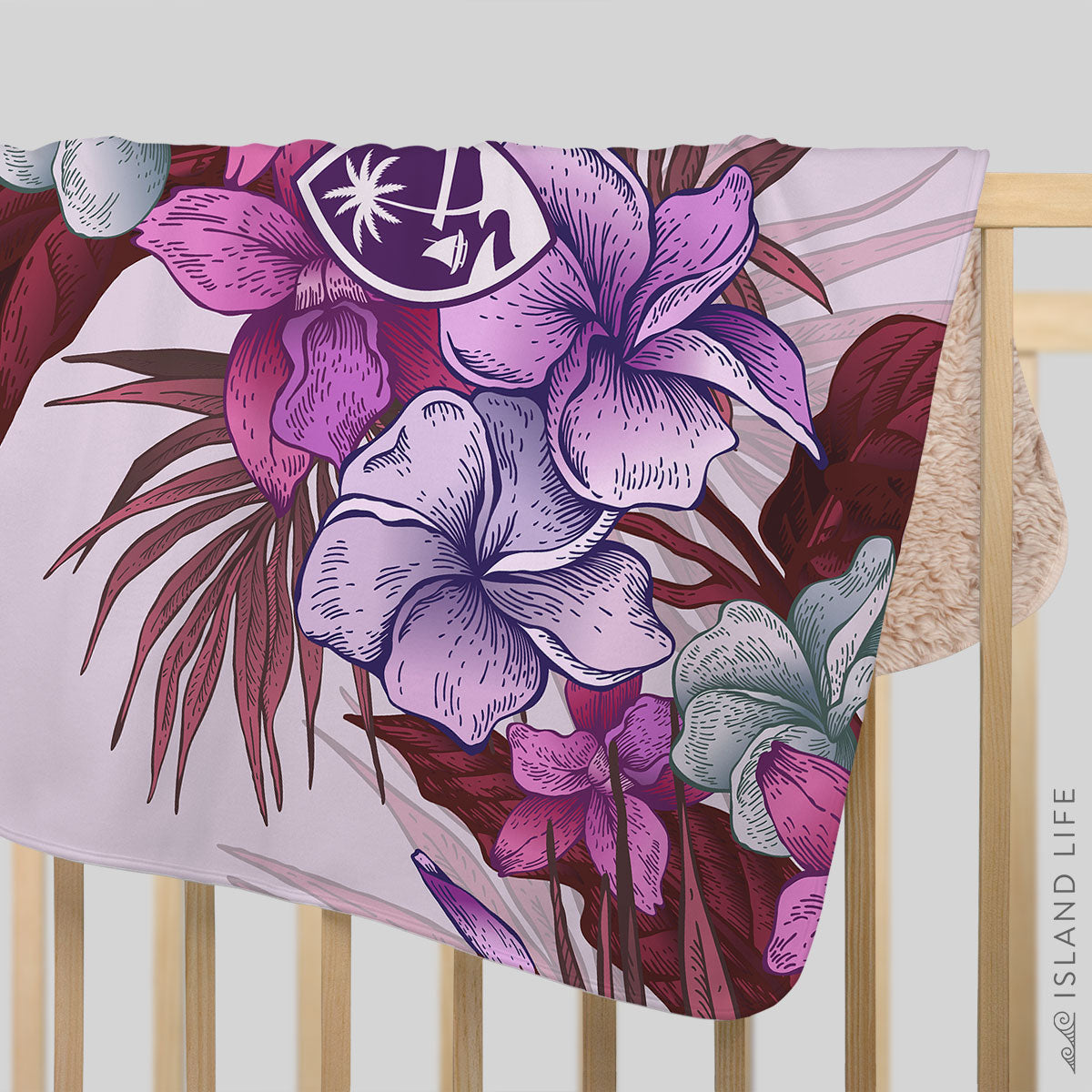 Guam Vintage Hibiscus Sherpa Baby Blanket