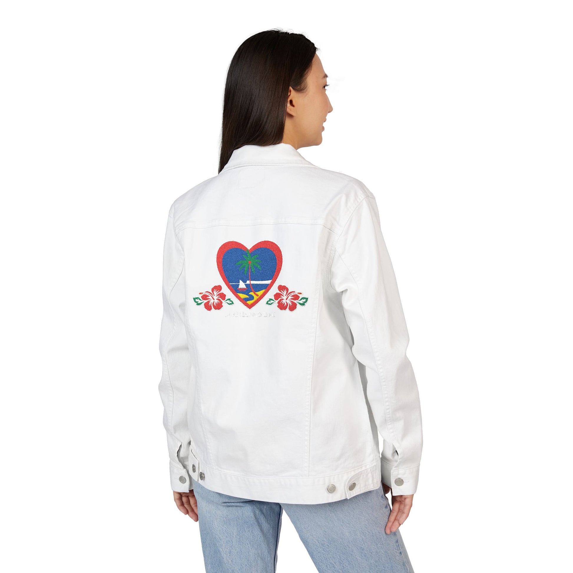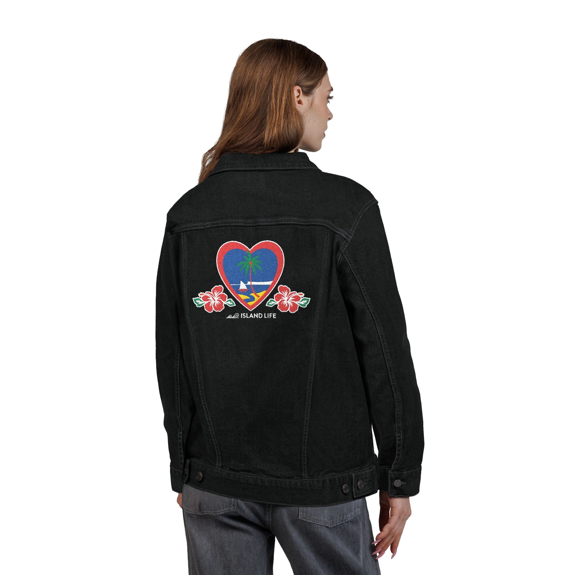 Heart Guam Embroidered Unisex Denim Jacket