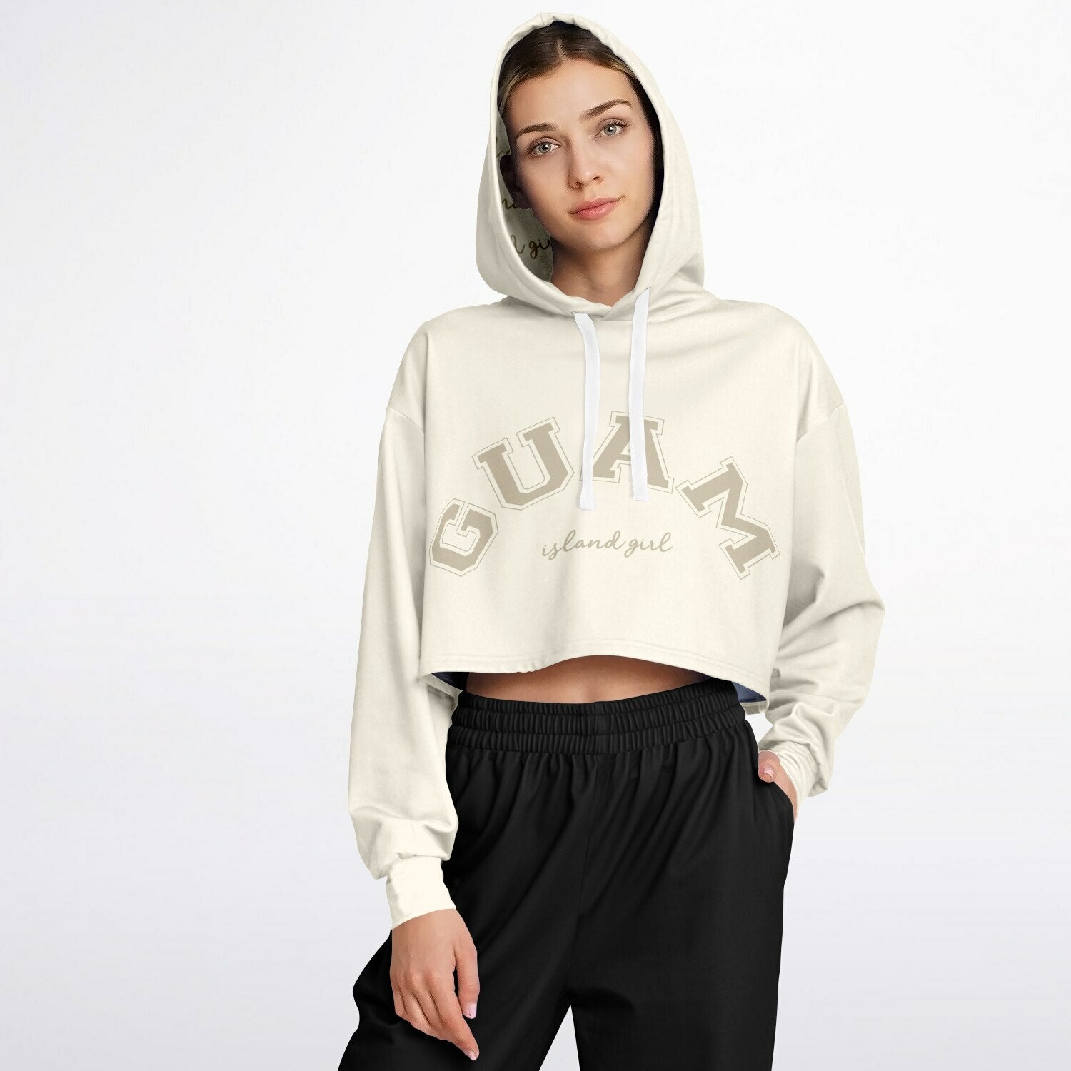 Islander Guam Girl Cream Cropped Hoodie