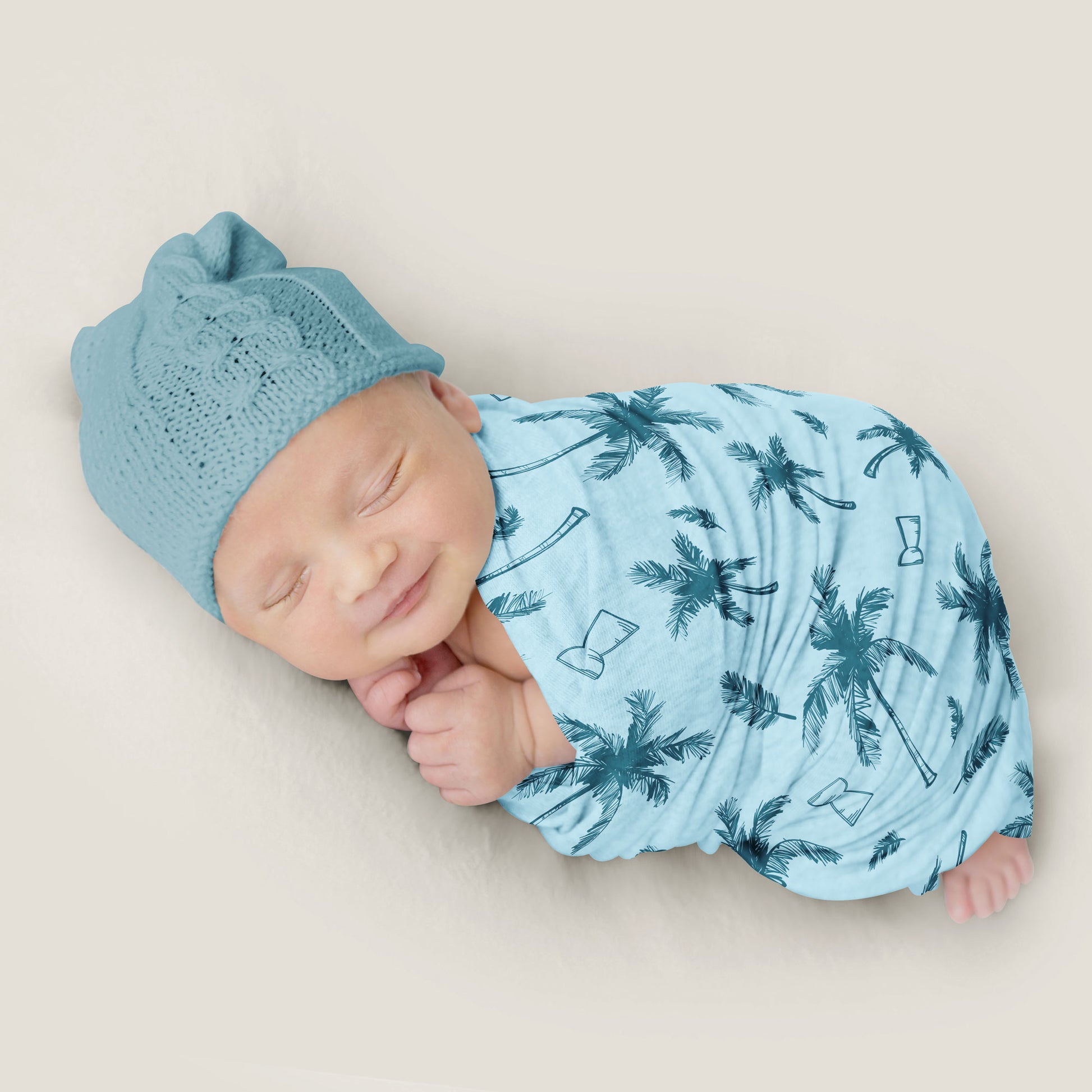 Latte Stone Coconut Trees Blue Baby Swaddle Blanket