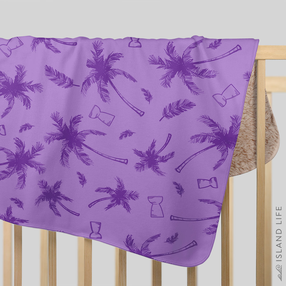 Latte Stone Coconut Trees Purple Sherpa Baby Blanket