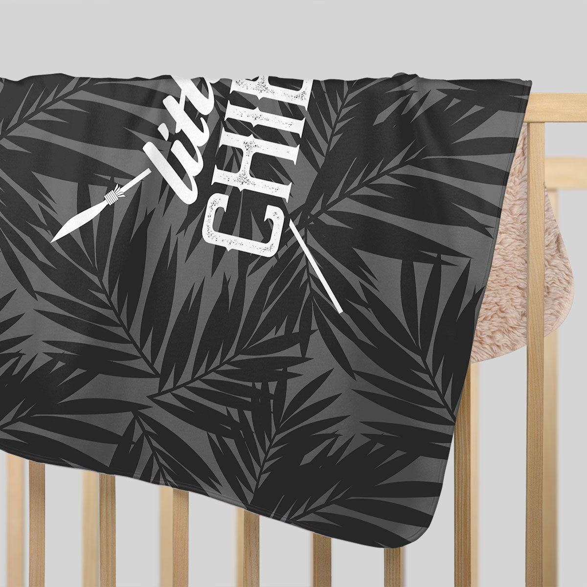 Little Chief Coconut Leaves Gray Baby Sherpa Blanket