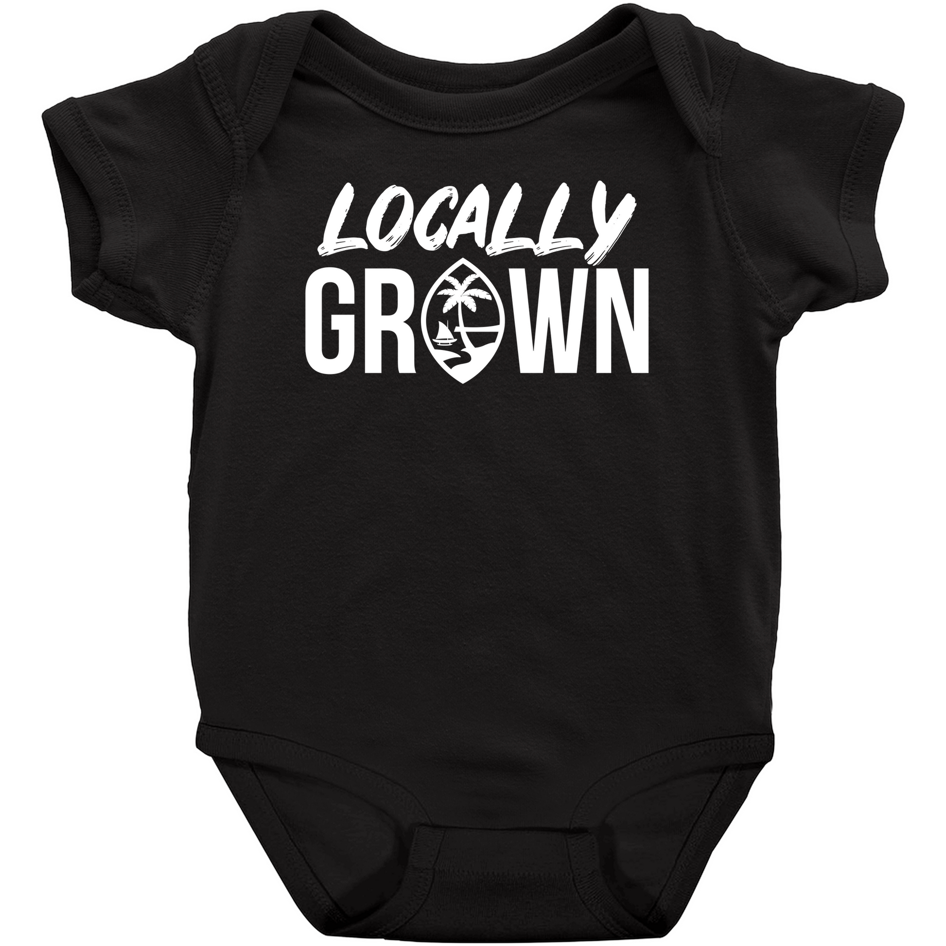 Simply awesome baby short sleeve bodysuit featuring the phrase, "Locally Grown" with the Guam seal. The perfect clothing piece for your local baby.