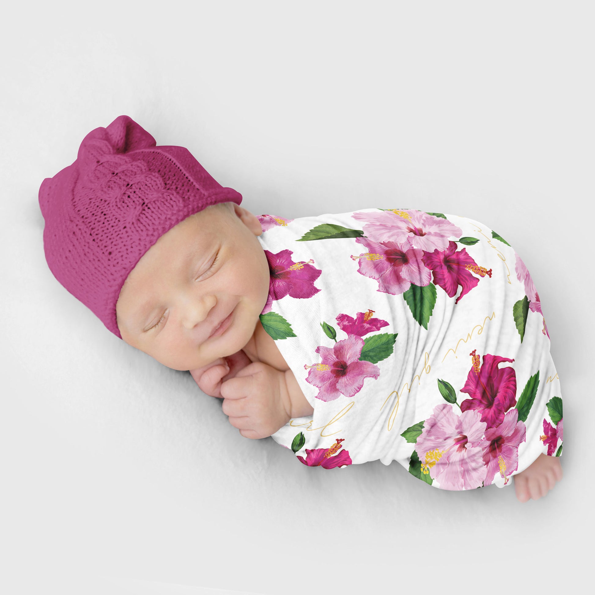 Neni Girl Fuchsia Hibiscus Guam CNMI Baby Swaddle Blanket