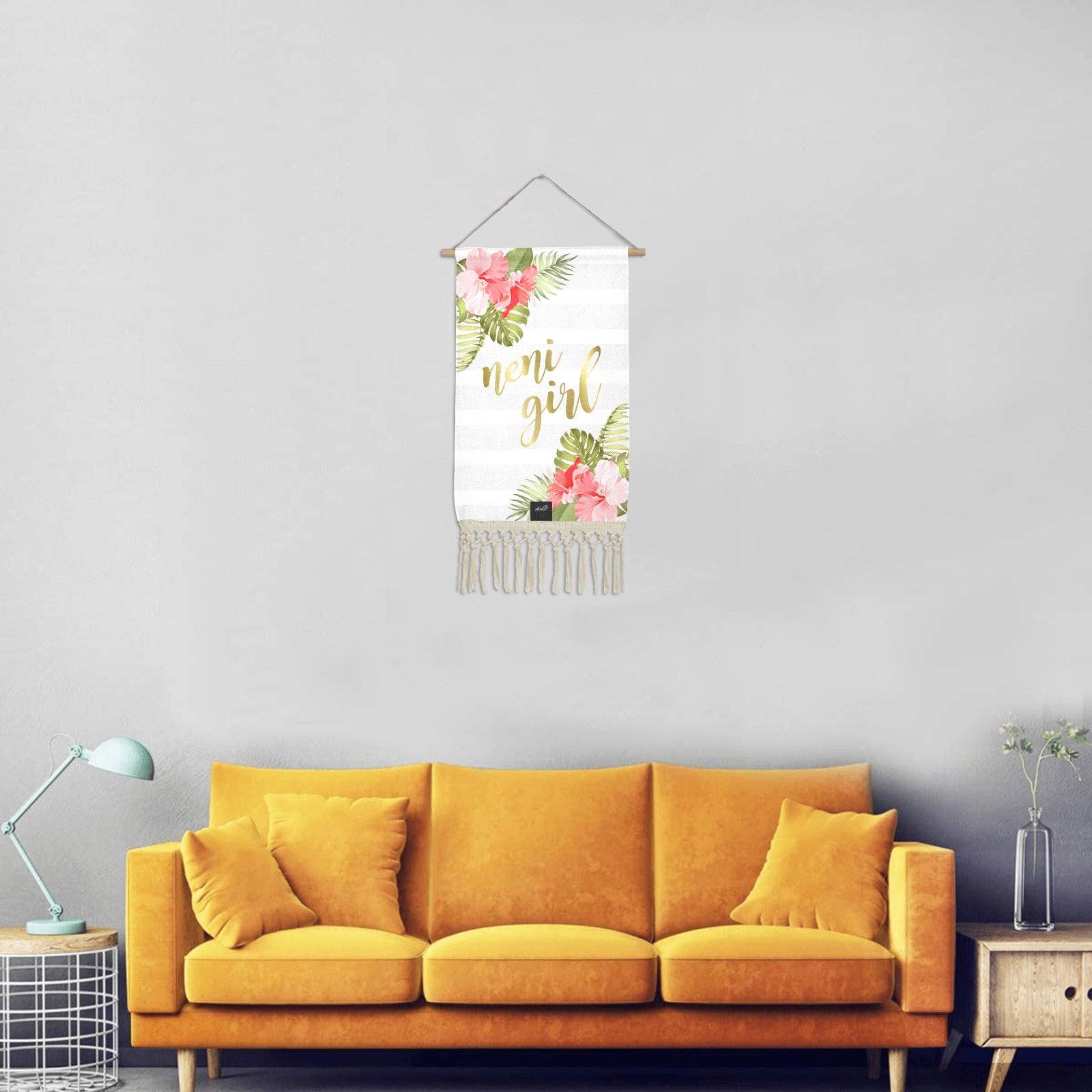 Neni Girl Hibiscus Striped Guam CNMI Linen Hanging Poster