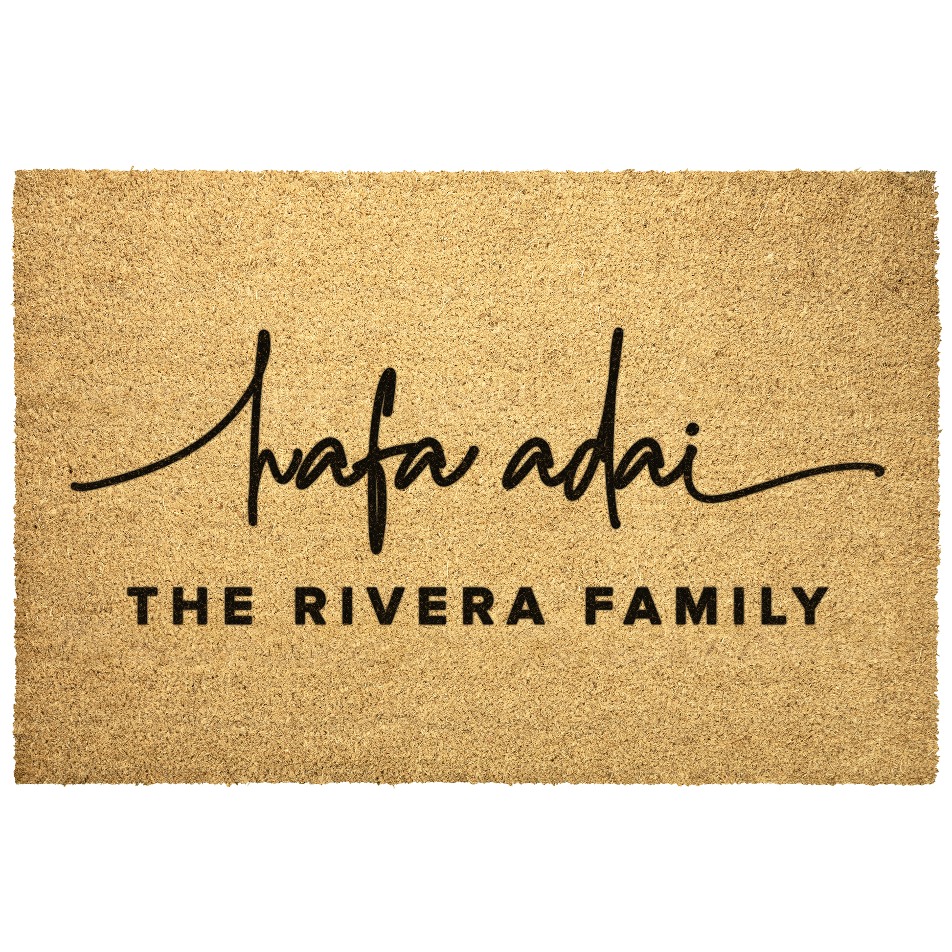Personalized Hafa Adai Script Guam CNMI Outdoor Coir Door Mat