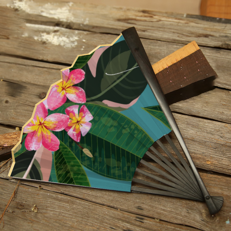 Plumeria Island Life Guam CNMI Spun Silk Folding Fan