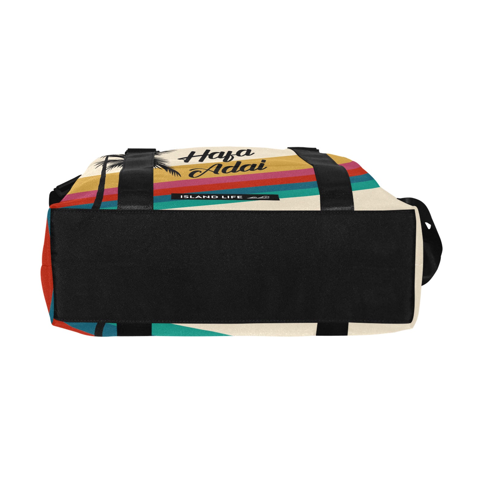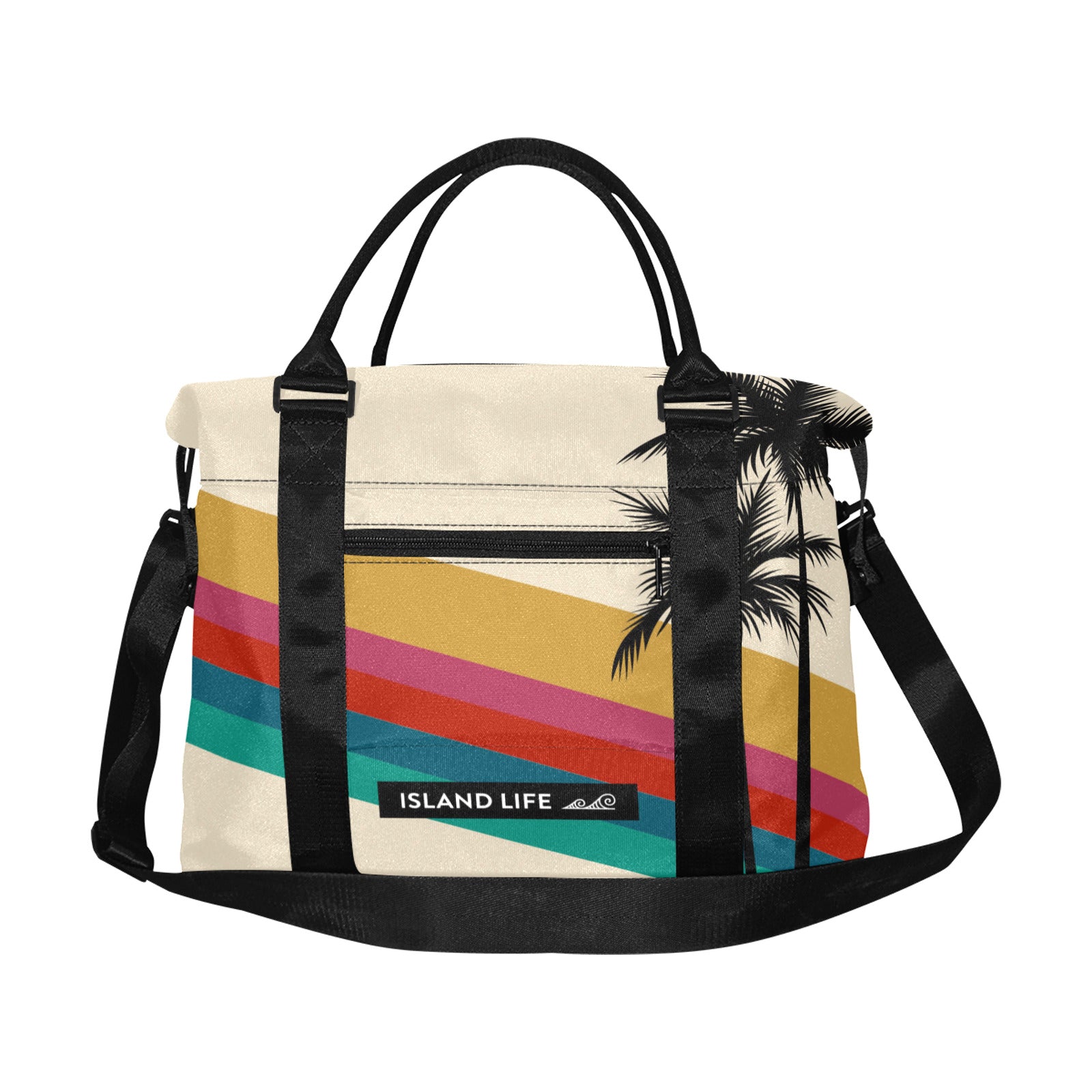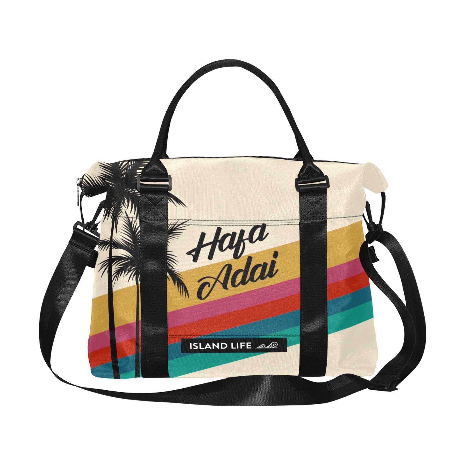 Make your travels more tropical with this Retro Rainbow Guam CNMI large duffel bag! It's the perfect companion for jet-setting adventurers who want to look stylish and organized. It can conveniently hang on luggage and hold all your stuff for trips, both near and far. So, who's ready to get their strut on? Grab your bag and hit the road, che'lu!