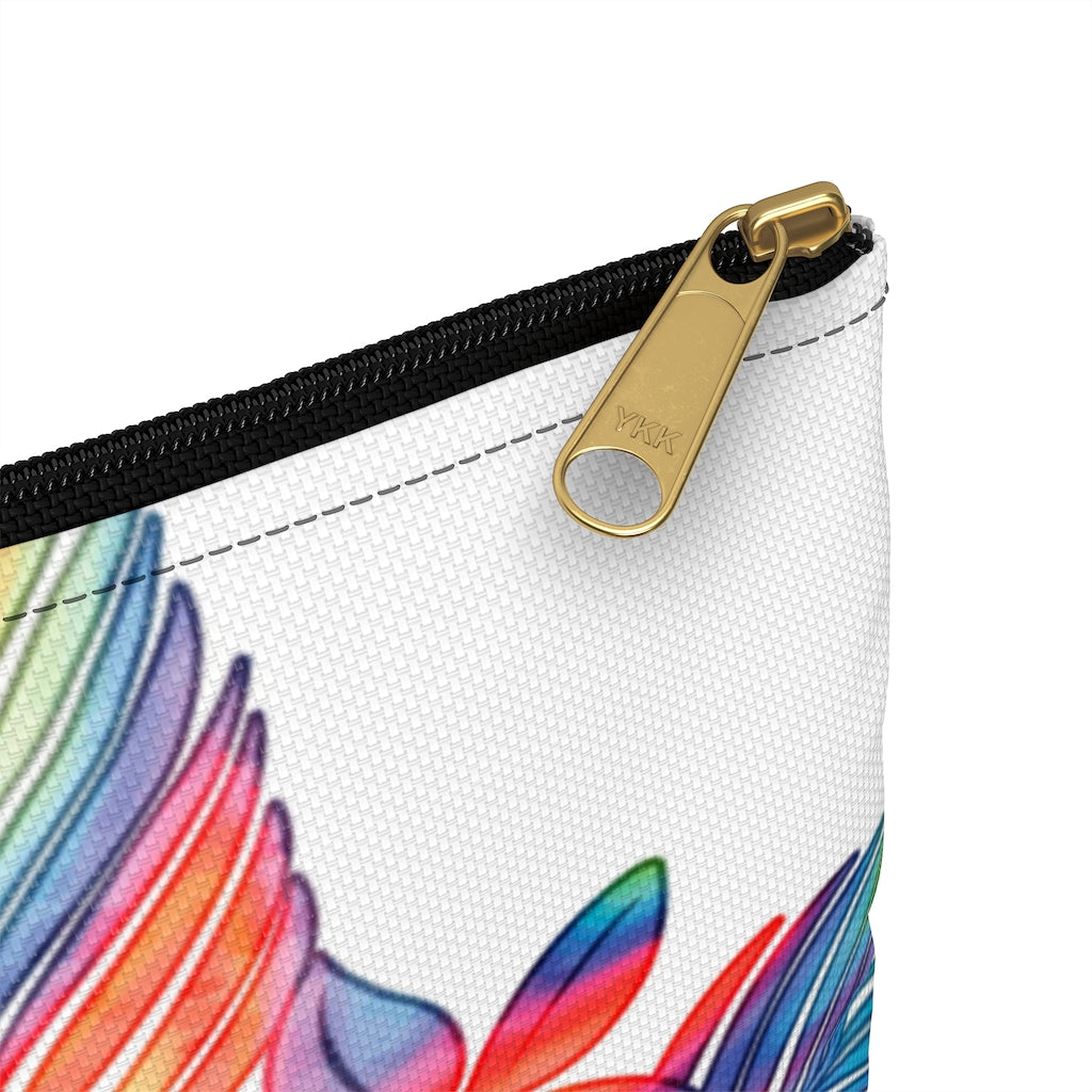 This high quality accessory pouch in two sizes and two different zipper colors. Our flat pouches vary from small to large and can be used for pretty much anything. They are great for makeup, receipts, phone chargers, candy, whatever else you carry in your purse.